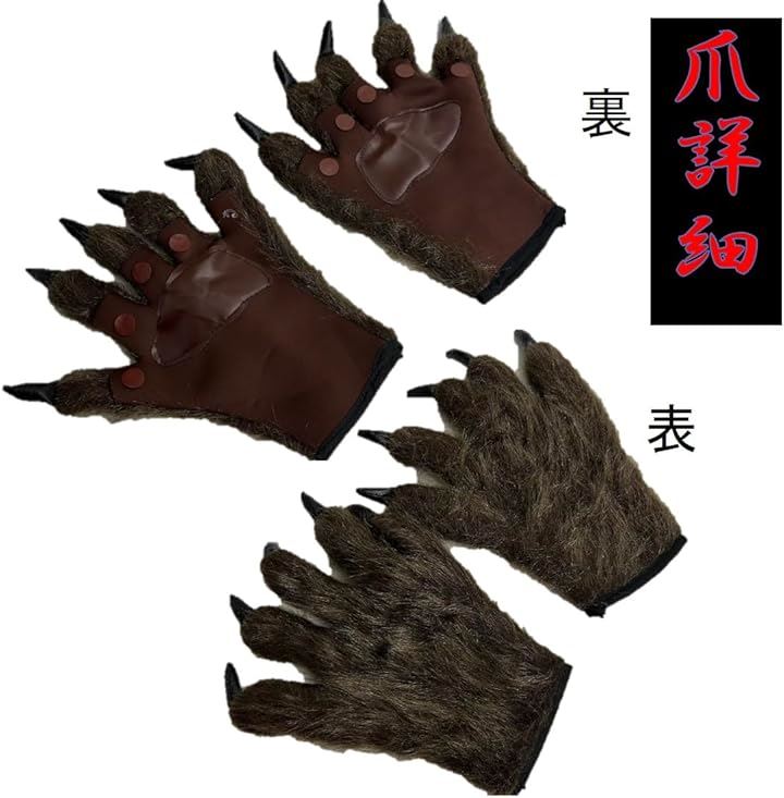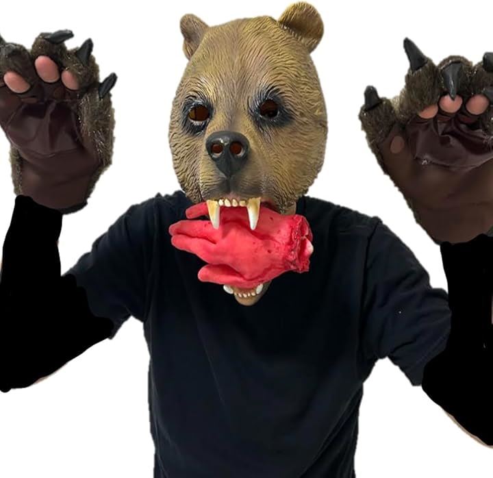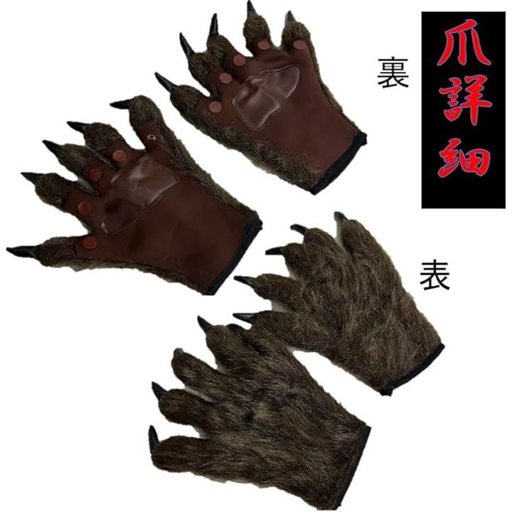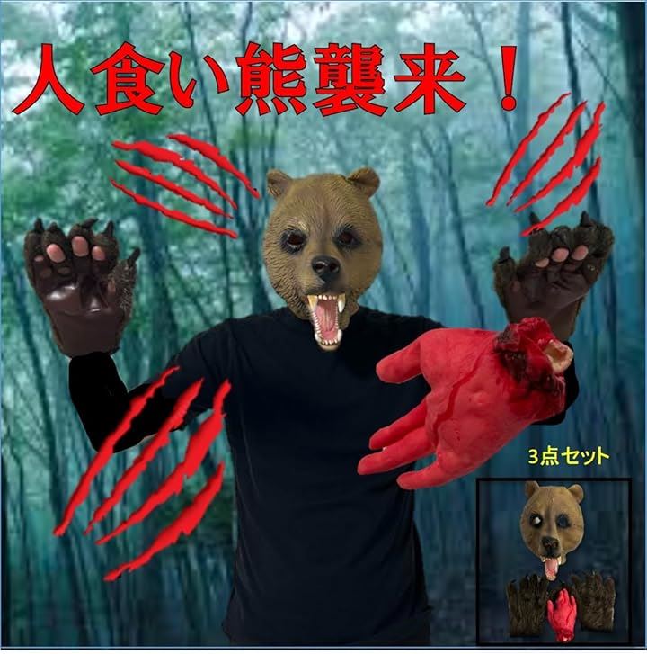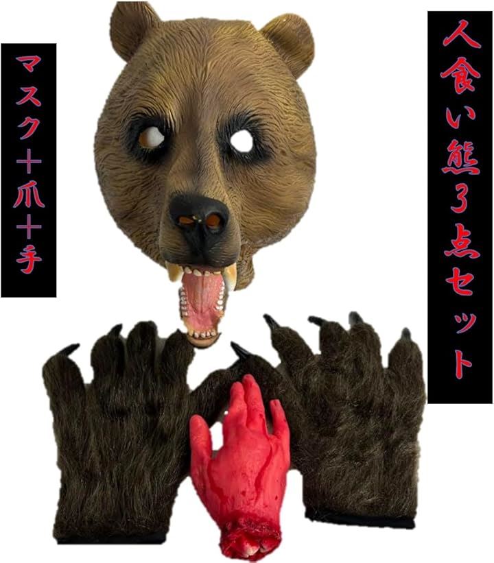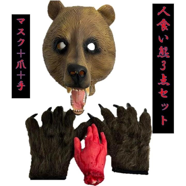 人食い熊 ヒグマ マスク+爪+手 セット 怖い ドッキリ リアル ホラー ハロウィン コスプレ 仮装 お面 仮面 肝試し
