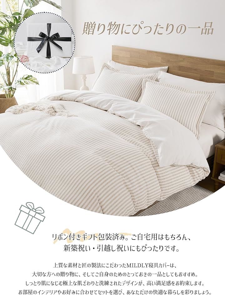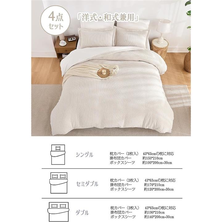 MILDLY 布団カバーセット 4点ベッドカバー ベッドカバーセット 自用・来客用・贈答用 掛け布団カバーに固定ひも8本&側面ファスナー ボックスシーツ全周伸縮バンドで簡単着脱 布団 |
