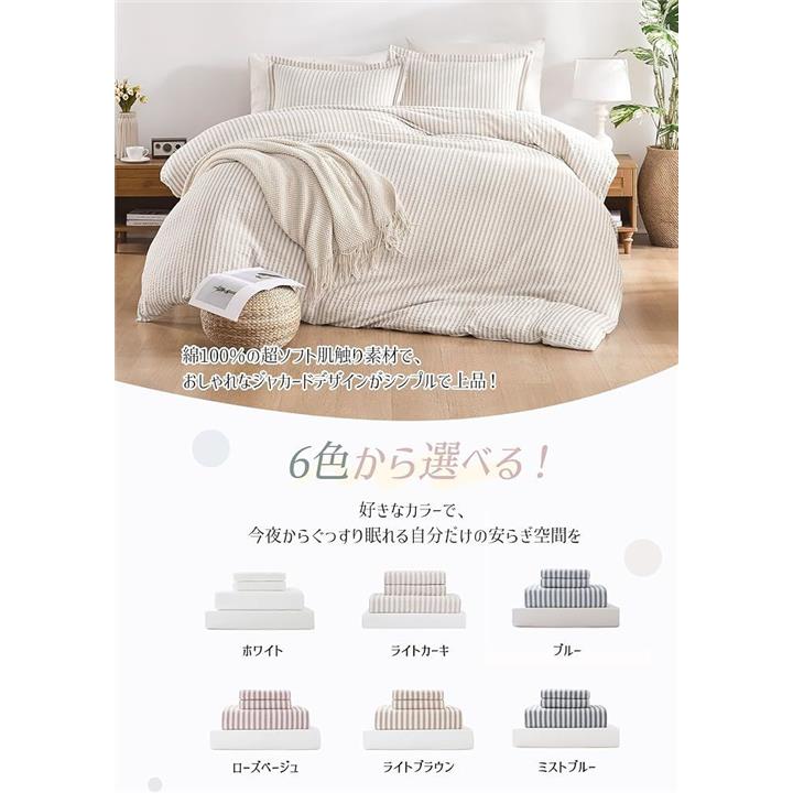 MILDLY 寝具カバーセット 布団カバーセット 綿100% 4点セット ソフト肌触り ベッドカバーセット 自用・来客用・贈答用 掛け布団カバーに固定ひも8本&側面ファスナー ボックスシーツ全周伸縮バンドで簡単着脱 布団カバー |