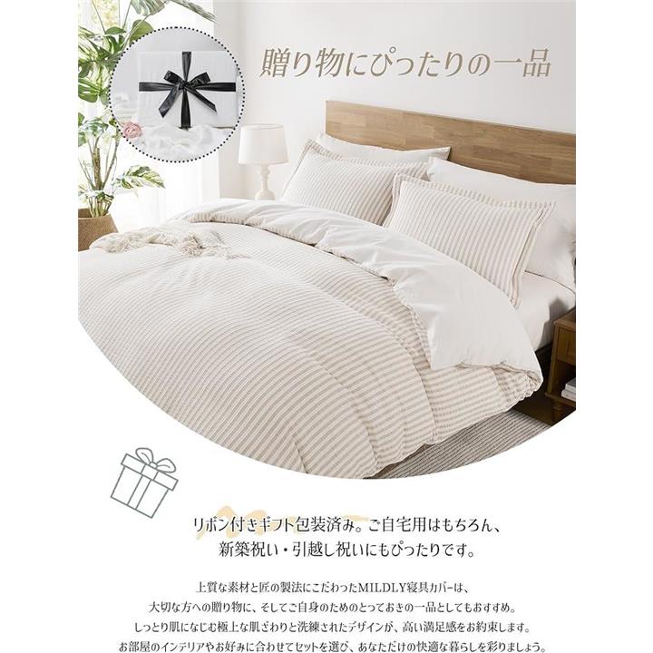 MILDLY 寝具カバーセット 4点セット セミダブル ベッドカバーセット 自用・来客用・贈答用 掛け布団カバーに固定ひも8本&側面ファスナー ボックスシーツ全周伸縮バンドで簡単着脱 |