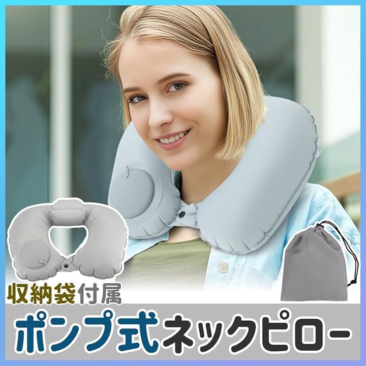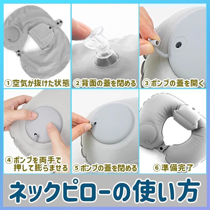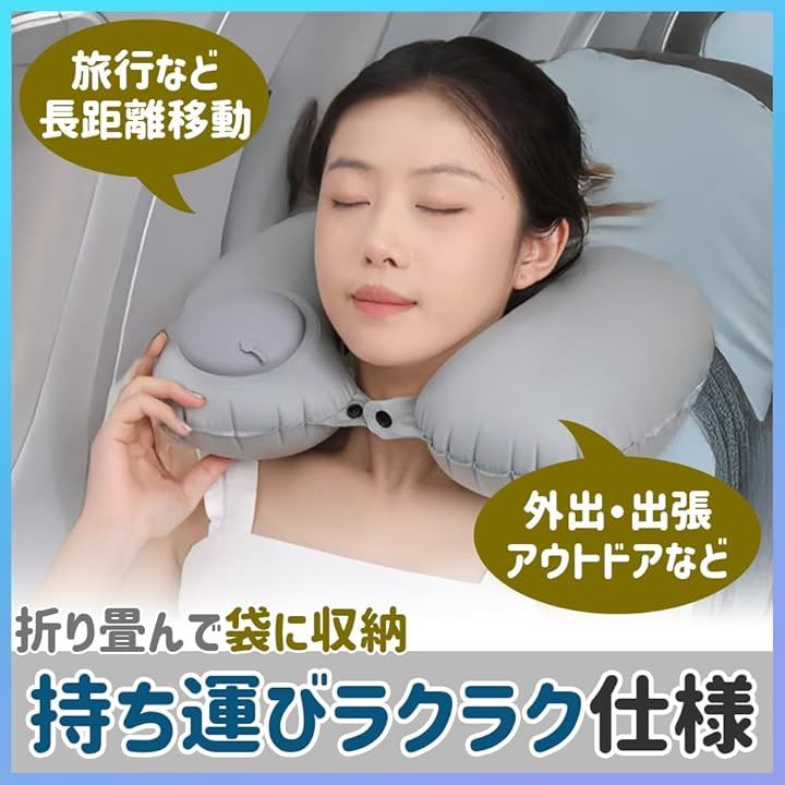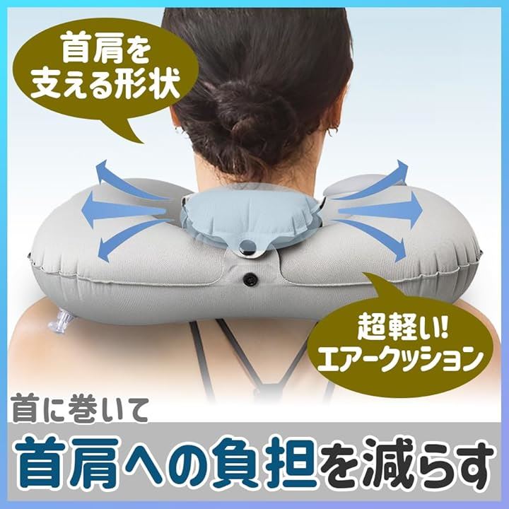 ポンプ式ネックピロー 手動 折り畳み コンパクト 軽量 旅行用品 長距離移動 仮眠 負担軽減