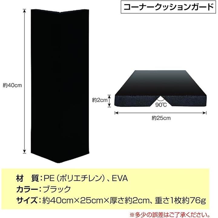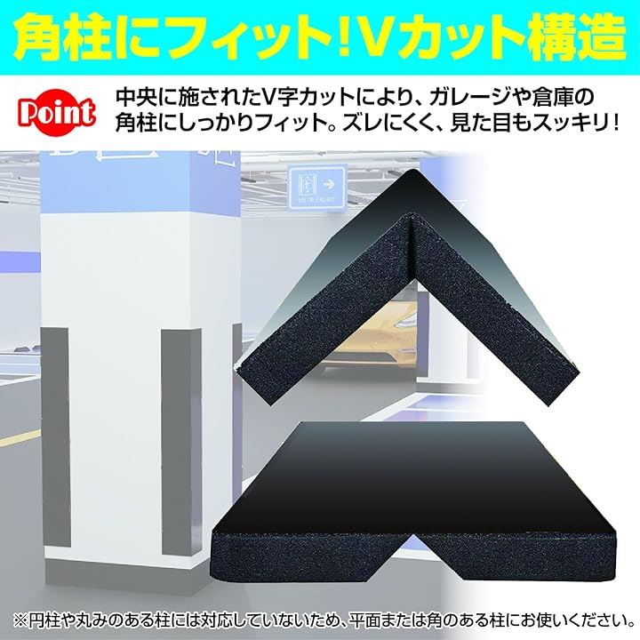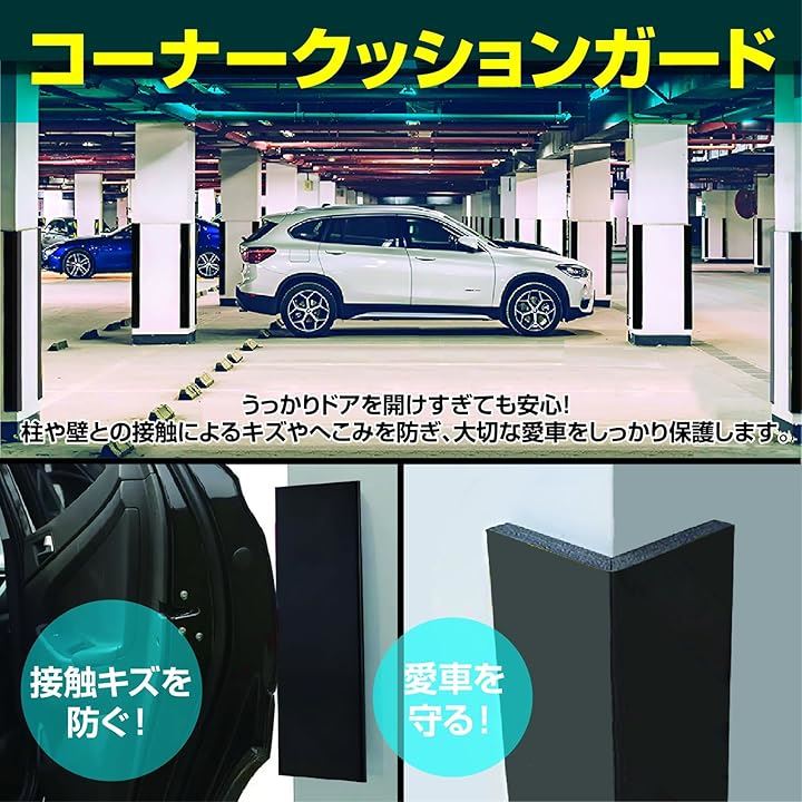 コーナーガード 黒 角柱用 クッション テープ付き 傷防止 駐車場 ガレージ 保護