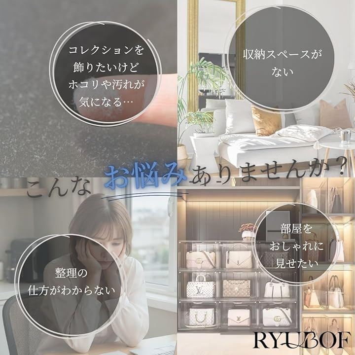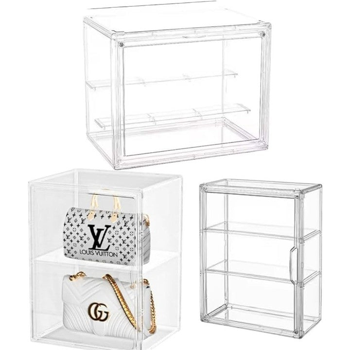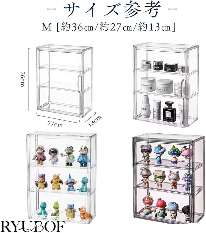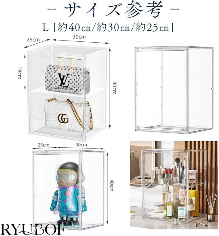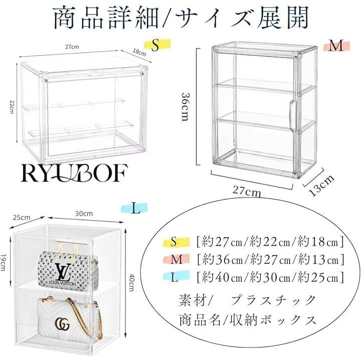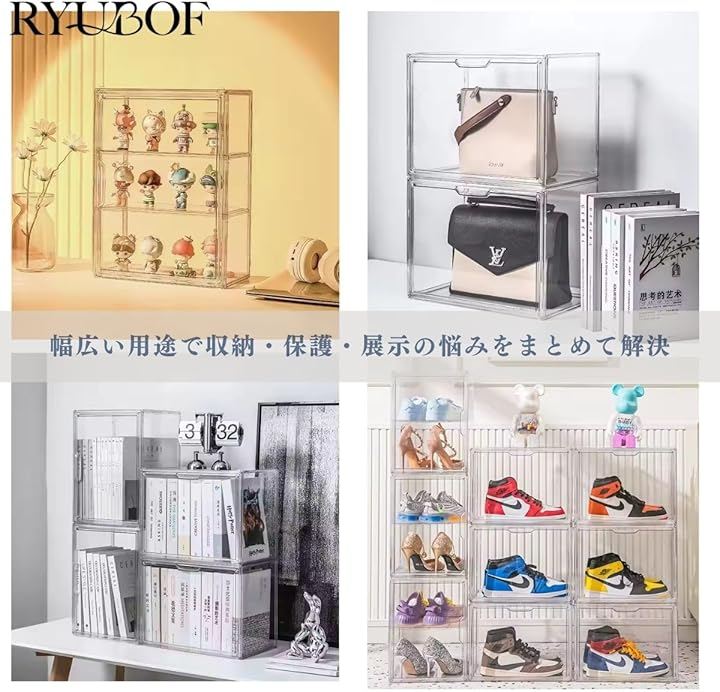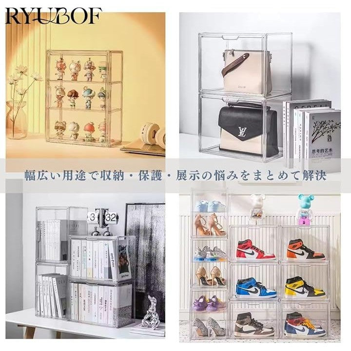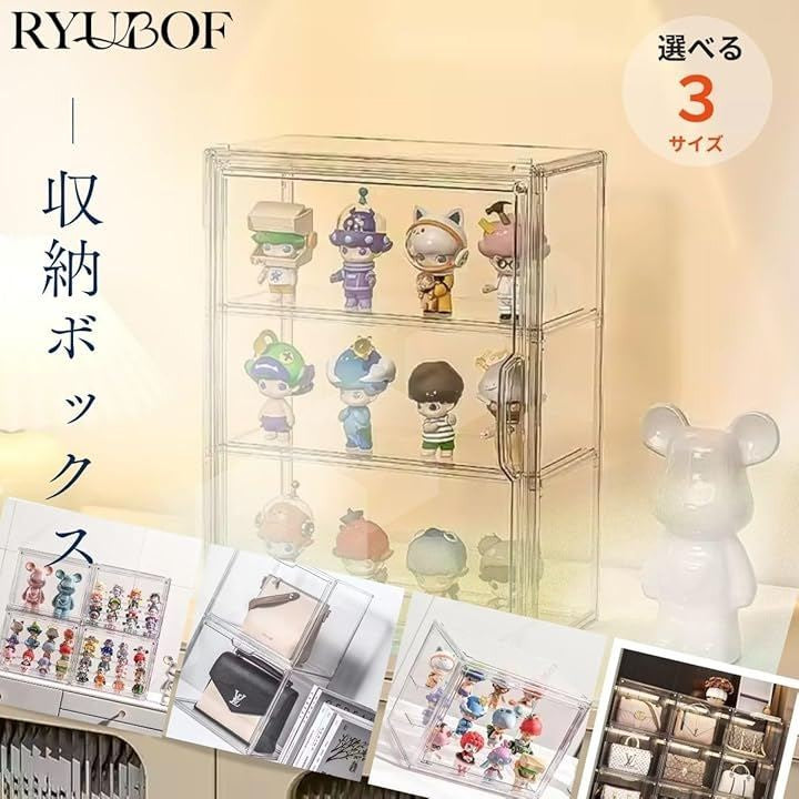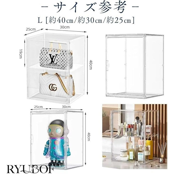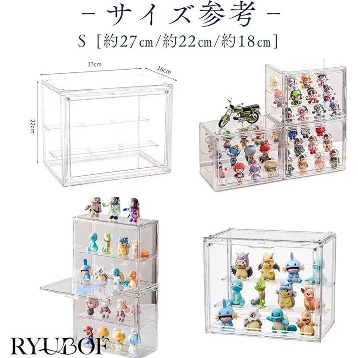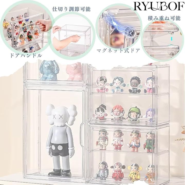 大容量 フィギュアケース 透明展示ケース 収納ボックス コレクションケース 積み重ね可能 マグネット式ドア 大サイズ 仕切り付き ホコリ防止 おもちゃ飾り 靴 バッグ