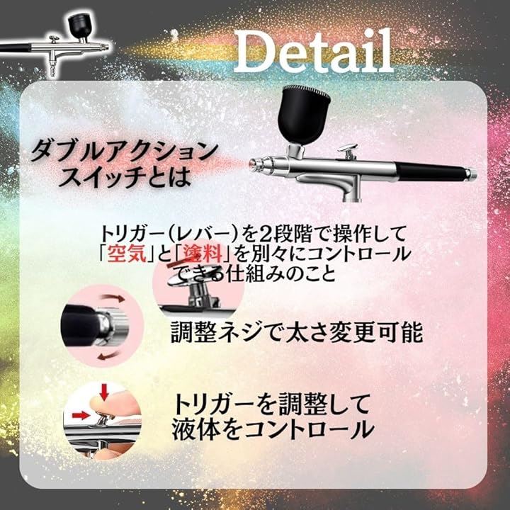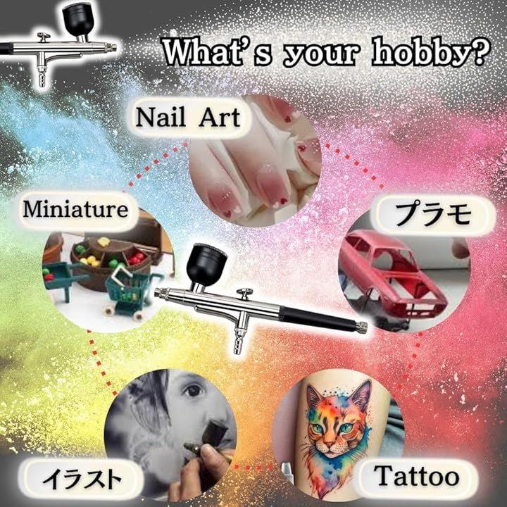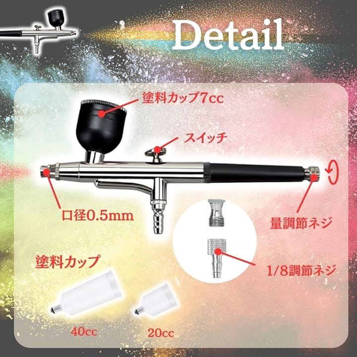 エアブラシ 0.3mm シングルアクション 重力式 ネイル 模型 塗装 3カップ付