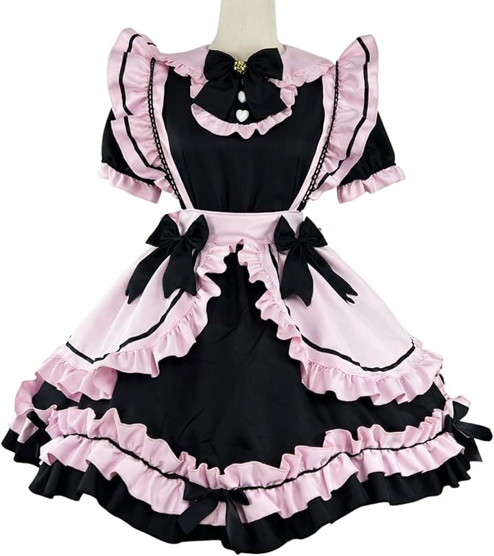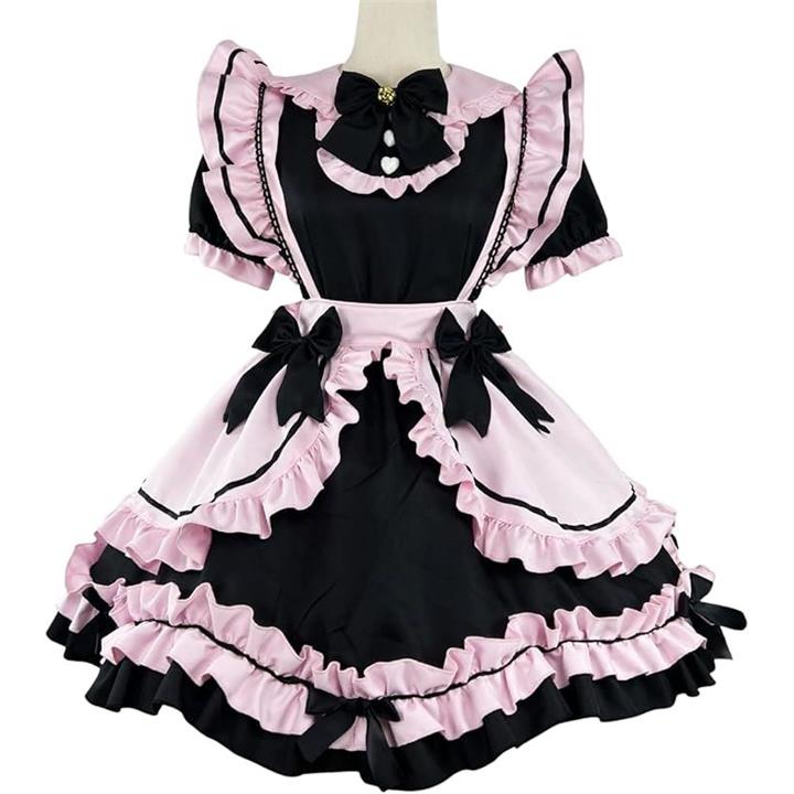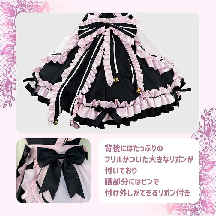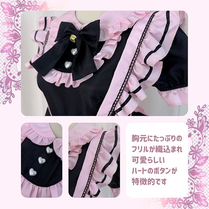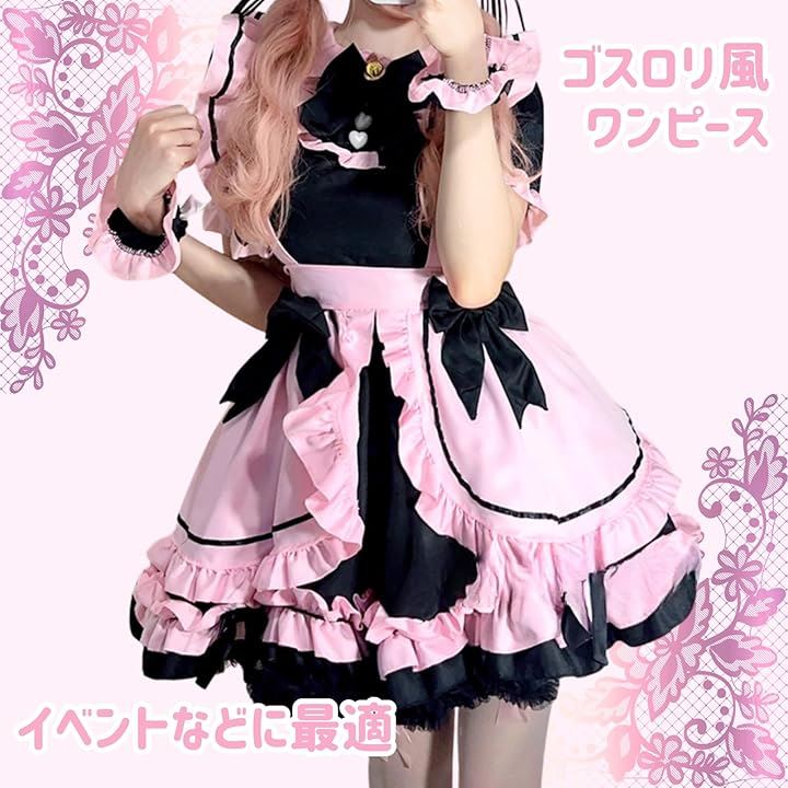 メイド服 ウェイトレス コスプレ ゴスロリ 半袖 可愛い ピンク ブラック ハロウィン 仮装