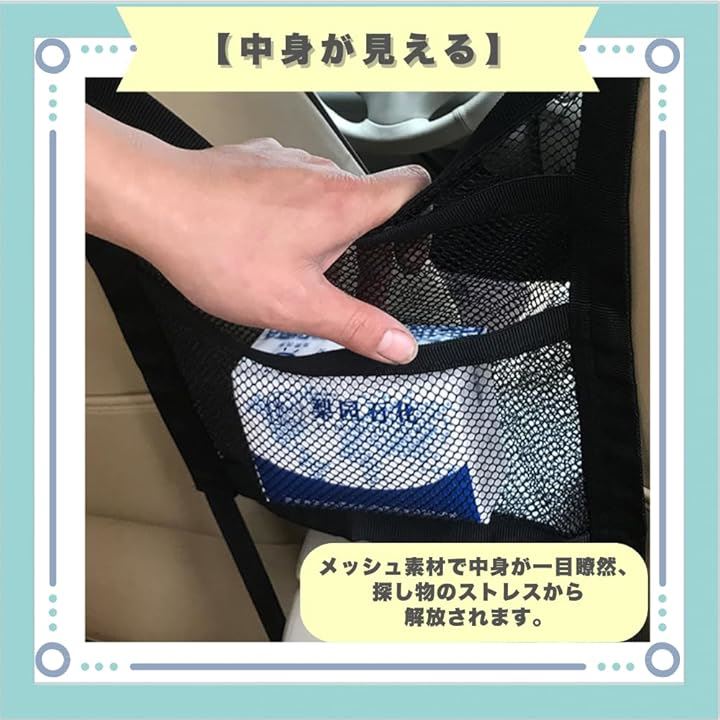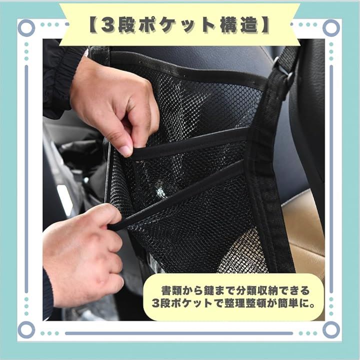 車用 収納ポケット メッシュ 小物 整理整頓 子供 安全対策 簡単設置 ブラック