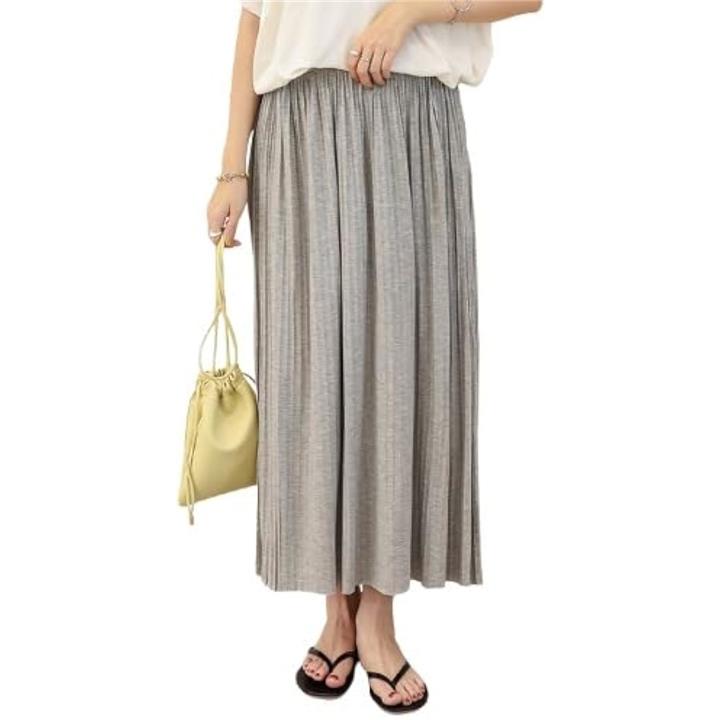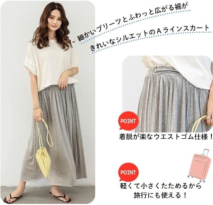 プリーツ ロングスカート マキシ丈 レディース アコーディオン 肌色 ボトムス ロング丈 フレア Aライン ウエストゴム