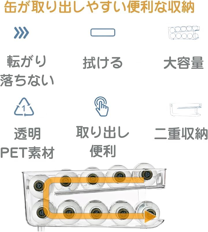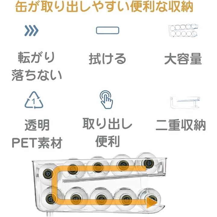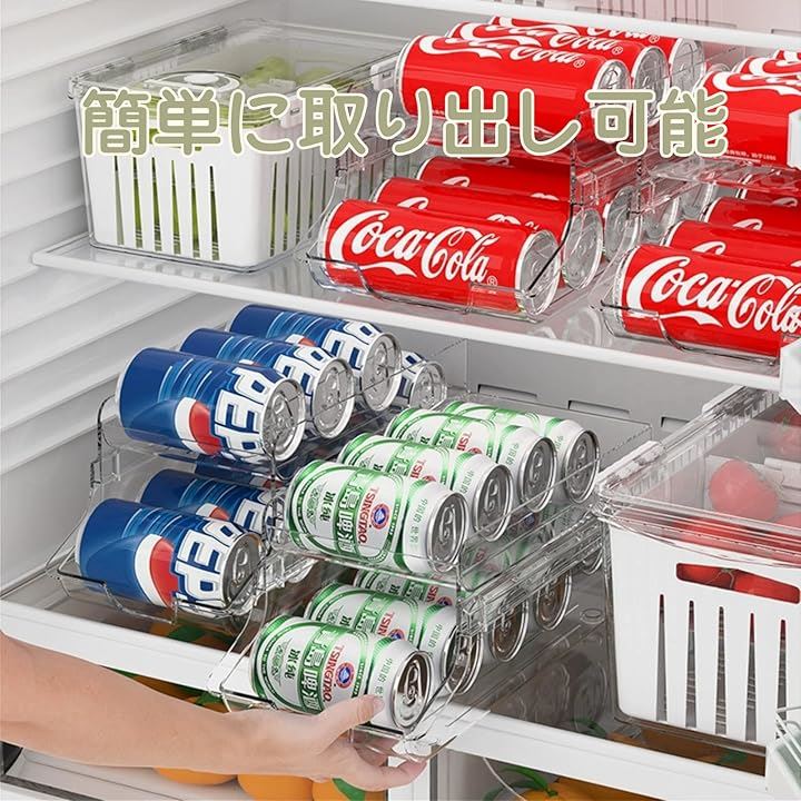 ローリングソーダ缶オーガナイザー 冷蔵庫用缶ディスペンサー 缶ストッカー ドリンクディスペンサー