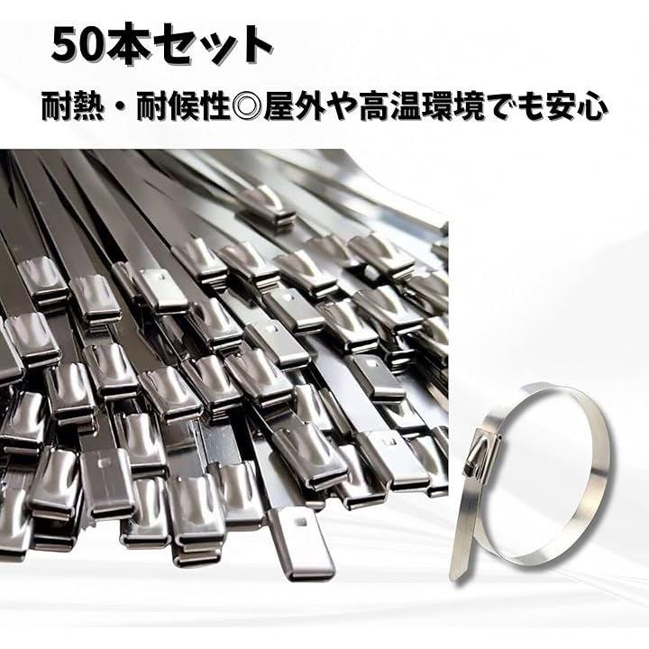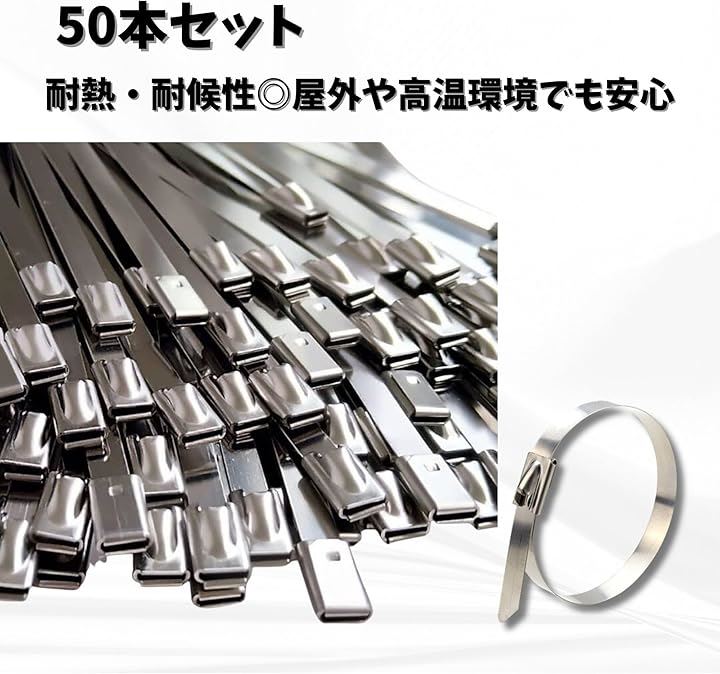 結束バンド ステンレス製 高耐久 ケーブル固定・配線整理用 50本セット 強力固定タイプ