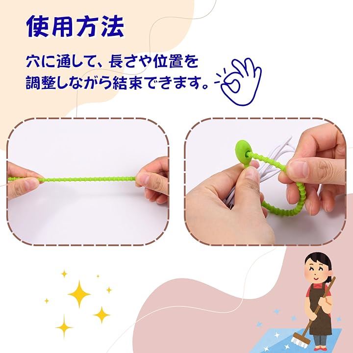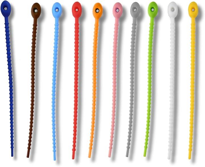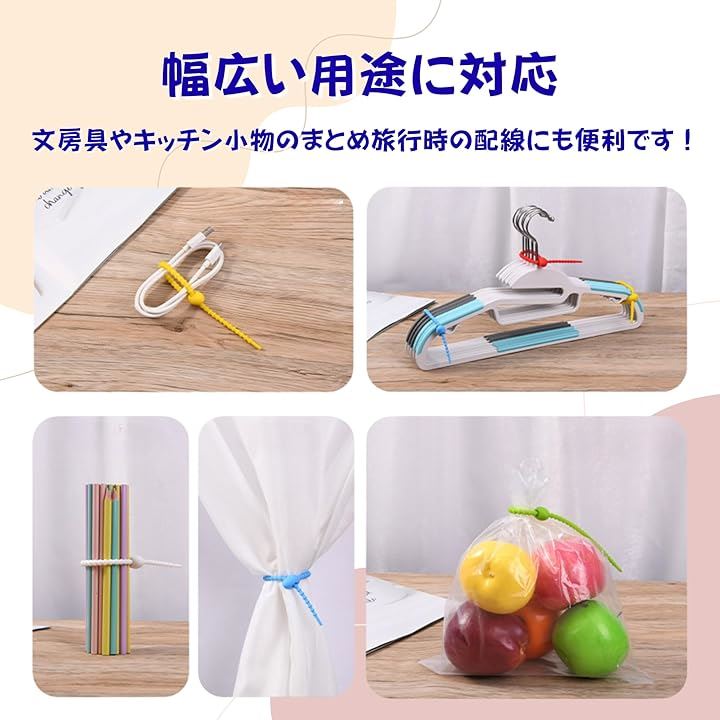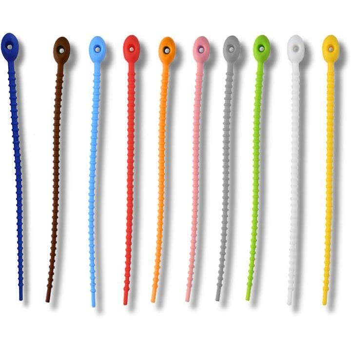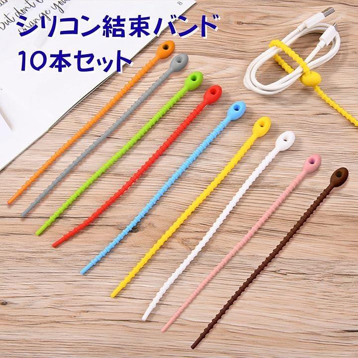 シリコン結束バンド 10本セット 繰り返し使える ケーブルバンド 配線整理用 取り外し簡単 柔らかくて丈夫 配線・コードの整理に便利