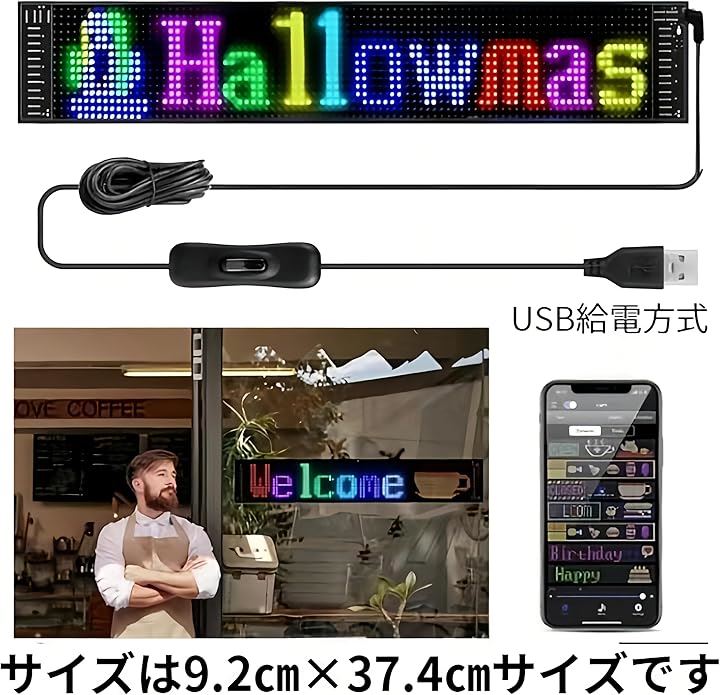 LED電光掲示板 観光バス 小型メッセージボード USB電源 アプリ対応 案内表示・インバウンド対応