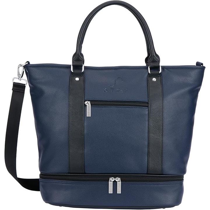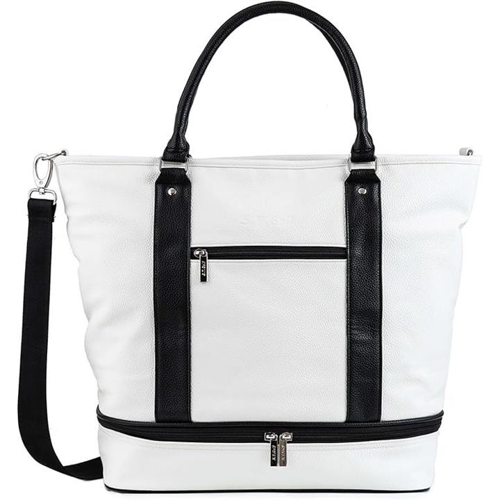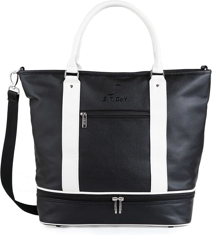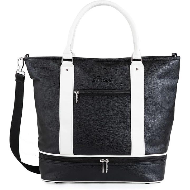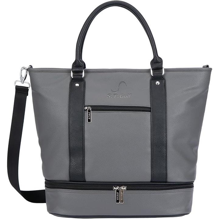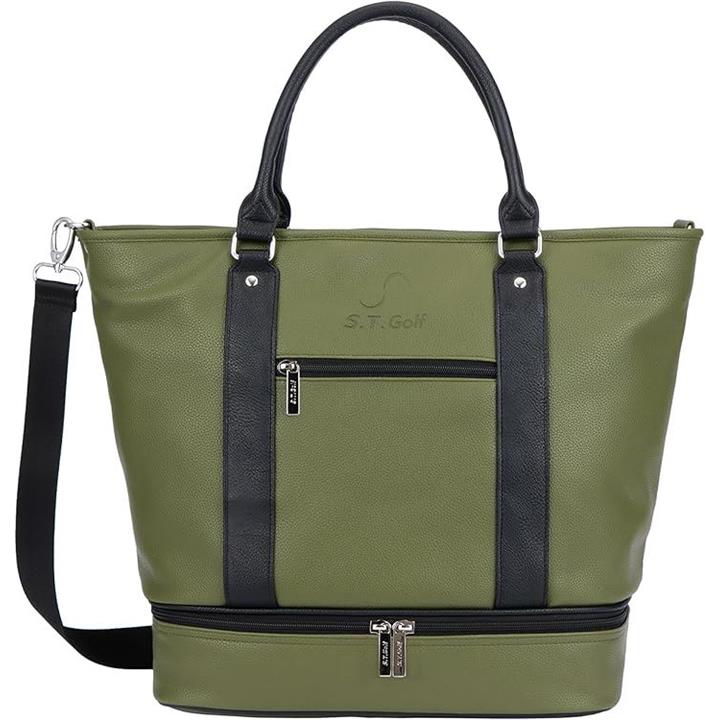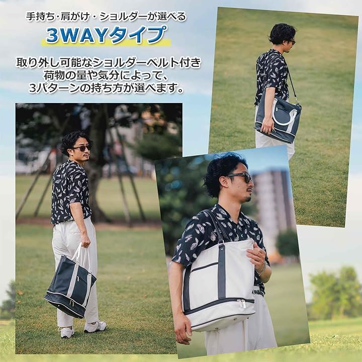 ゴルフ トートバッグ メンズ 高級PUレザー 大容量 シューズ収納可 3WAY 型押しロゴ ショルダーストラップ付属 防水