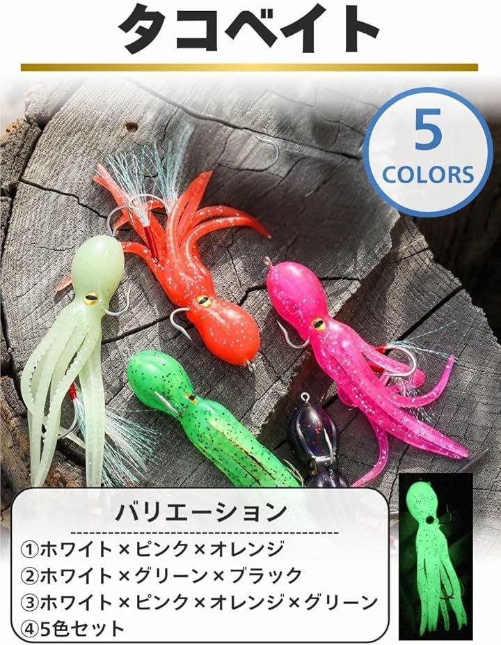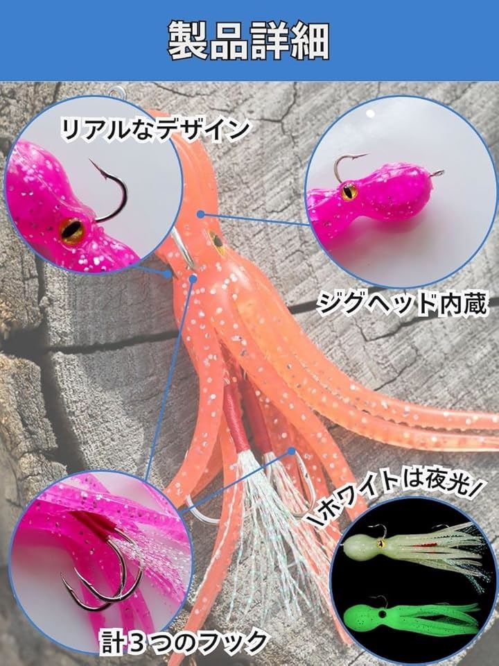 互換品タコベイト 3連フック ソフト ルアー ワーム 自作 釣り タイラバ インチク 夜光 根魚 シーバス