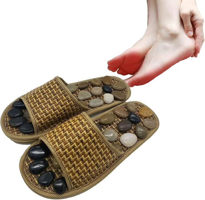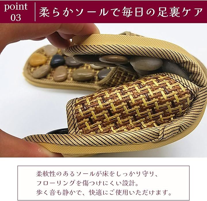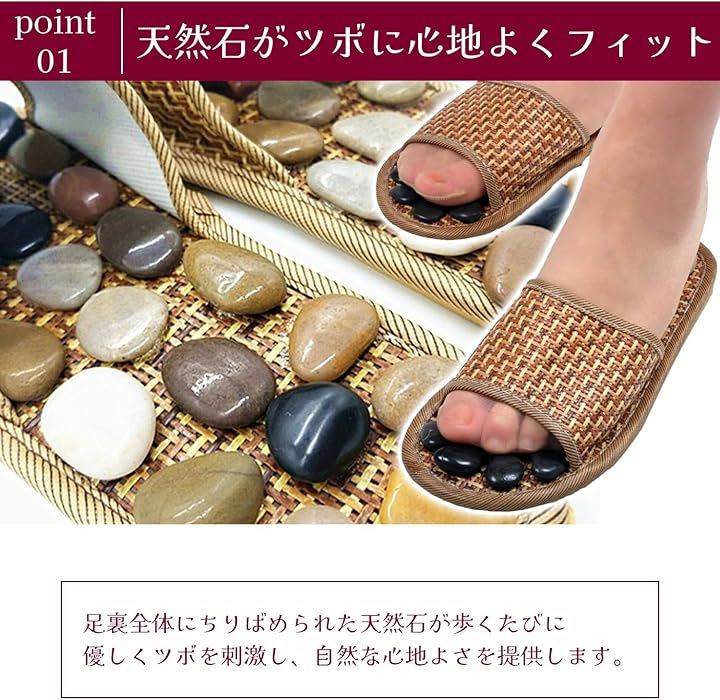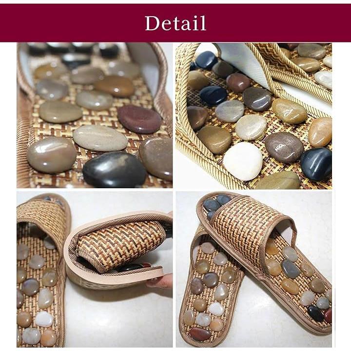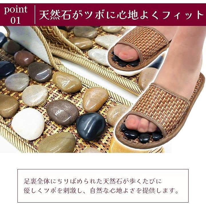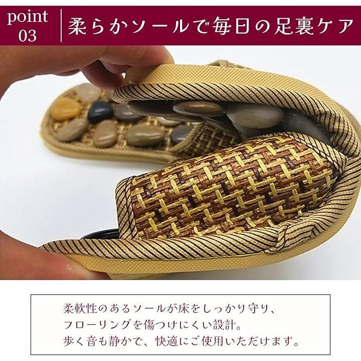 足つぼ スリッパ 健康サンダル 天然石 軽量 静音設計 籐編み 室内 メンズ レディース