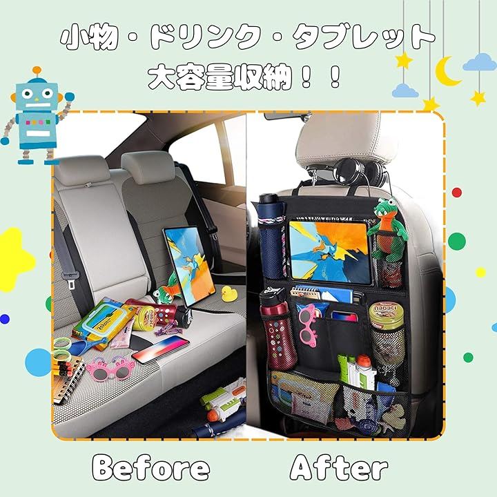 シートバックポケット 車用 多機能収納 タブレット対応 折りたたみ式 大容量 収納ポケット付き 車内スッキリ収納