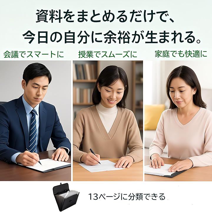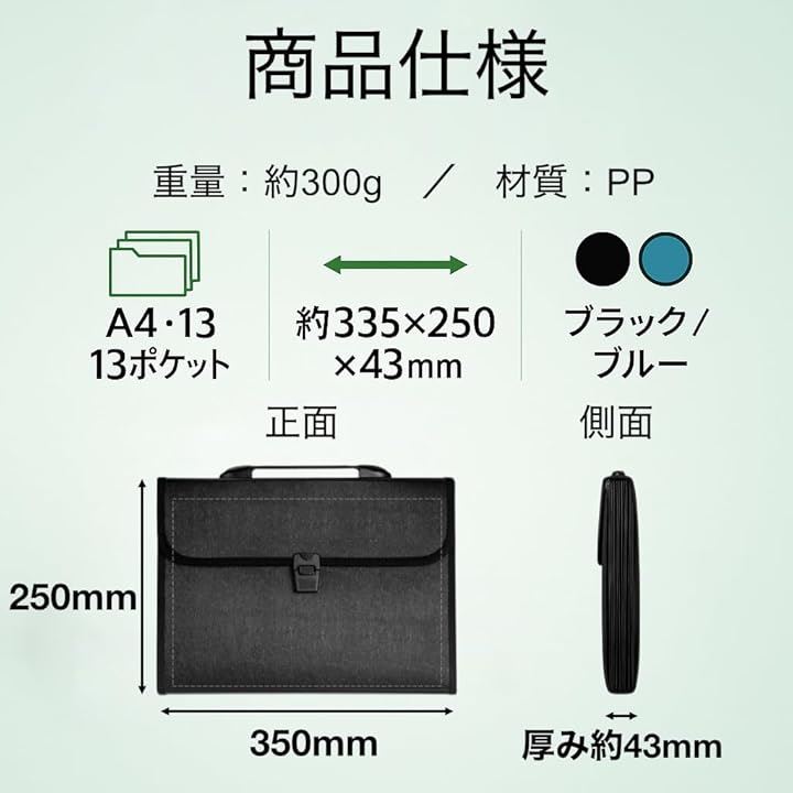 A4 13ポケット 大容量 ファイルケース 手提げ付き キャリングケース 書類整理 多機能 バッグ型 ドキュメントケース