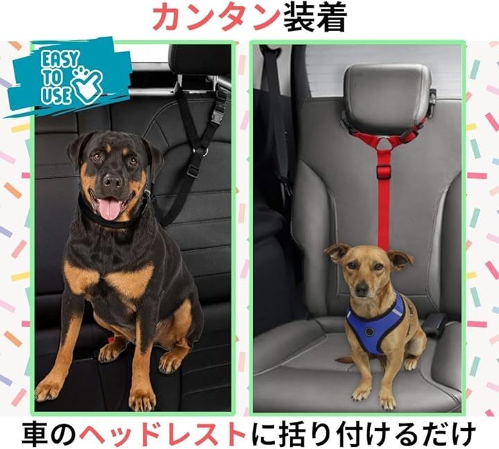犬 シートベルト 犬猫兼用 乗用車専用リード 暴れ防止 簡単装着