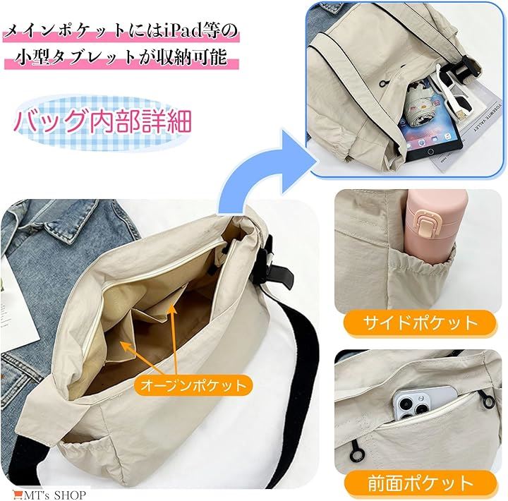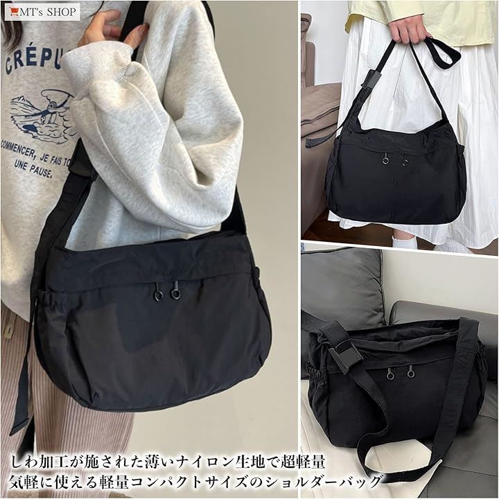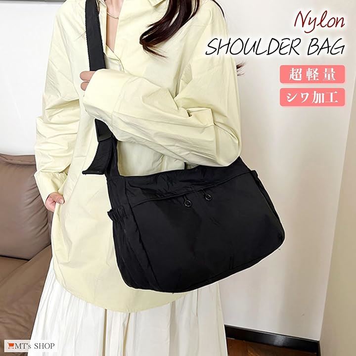 ショルダーバッグ ポシェット レディース 軽量 薄生地 ナイロン シワ加工 タブレット 斜めがけ 肩掛け 通勤 SH416
