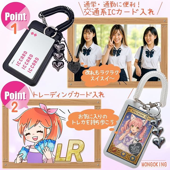 パスケース 可愛い 高校生 女子 定期入れ リール付き ハート チェキホルダー かわいい トレカケース 推し活 韓国