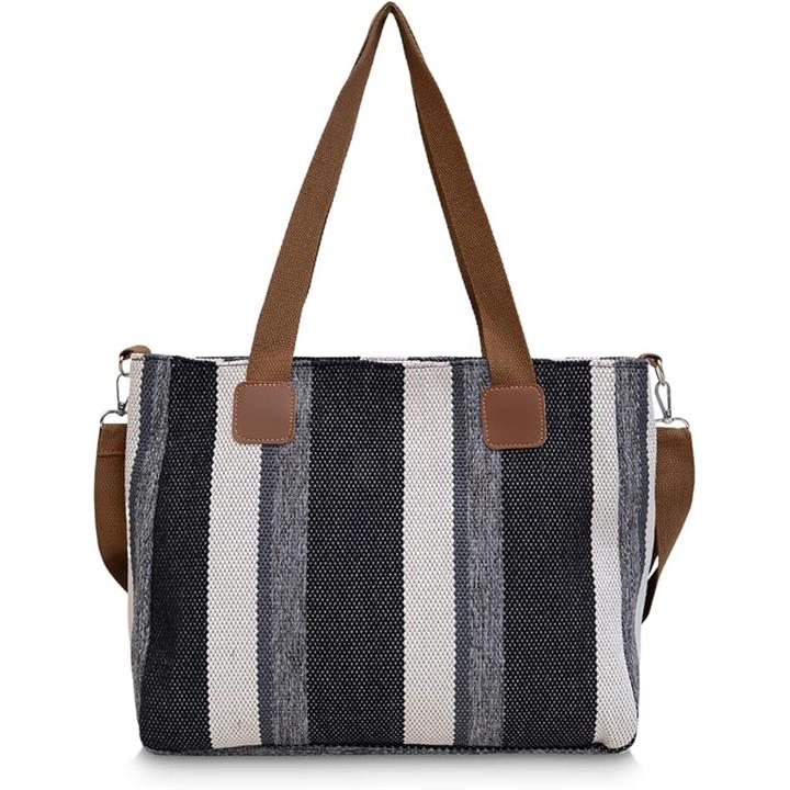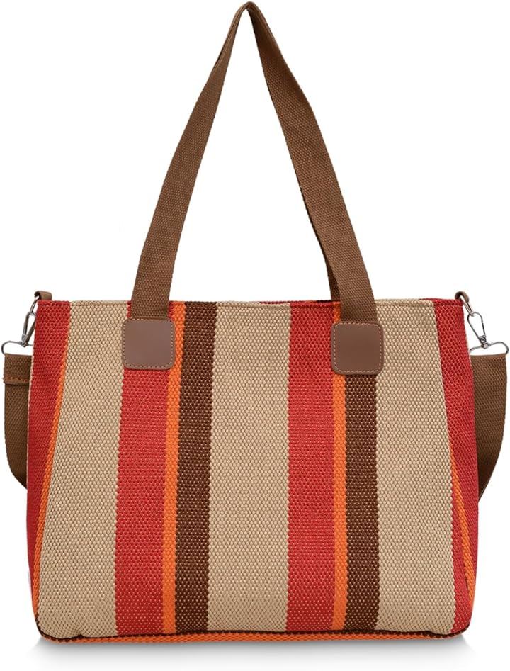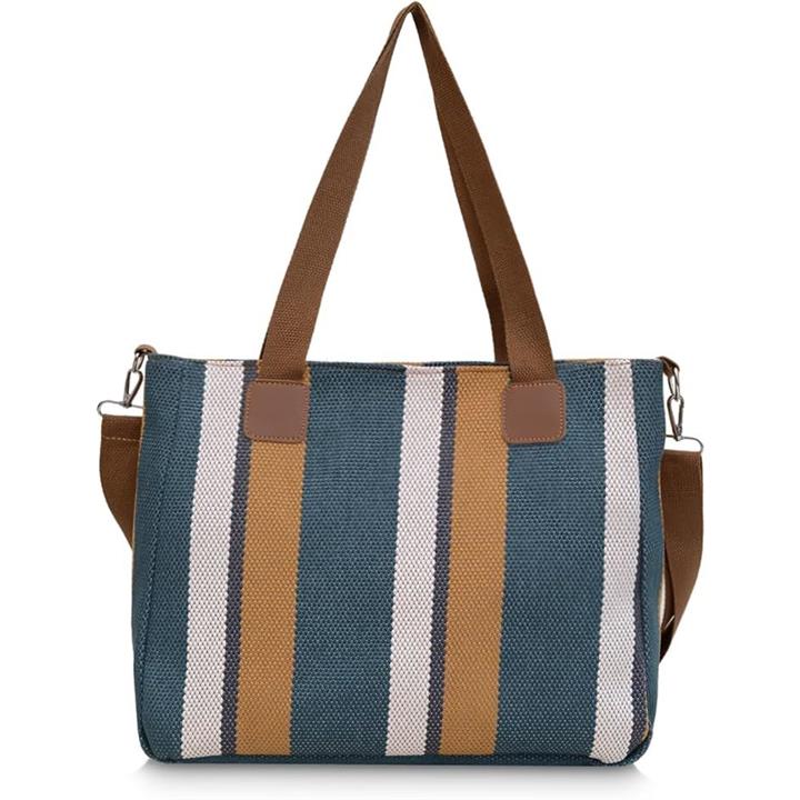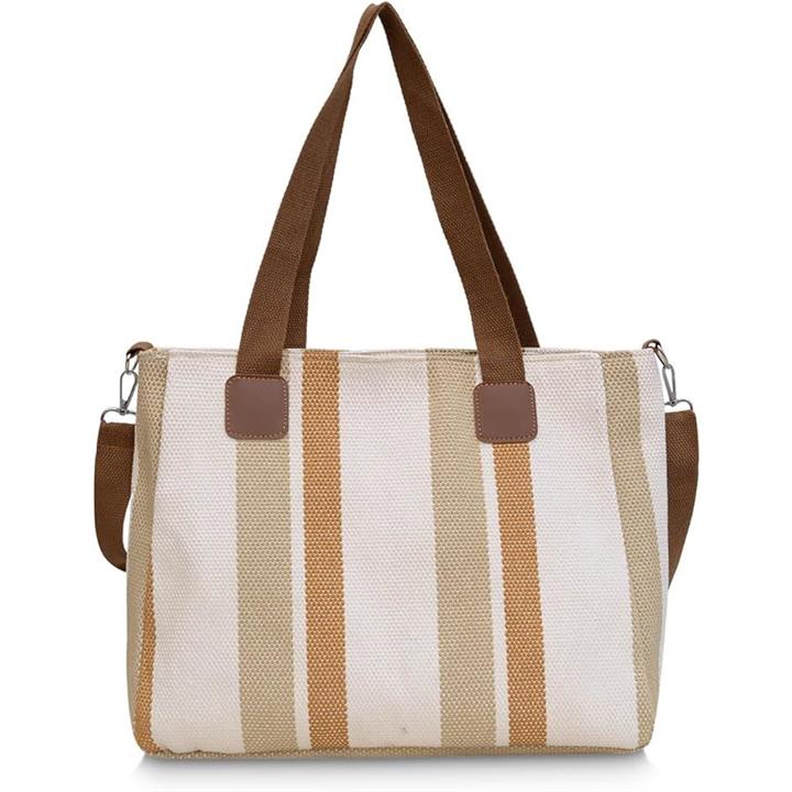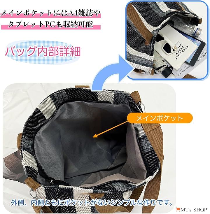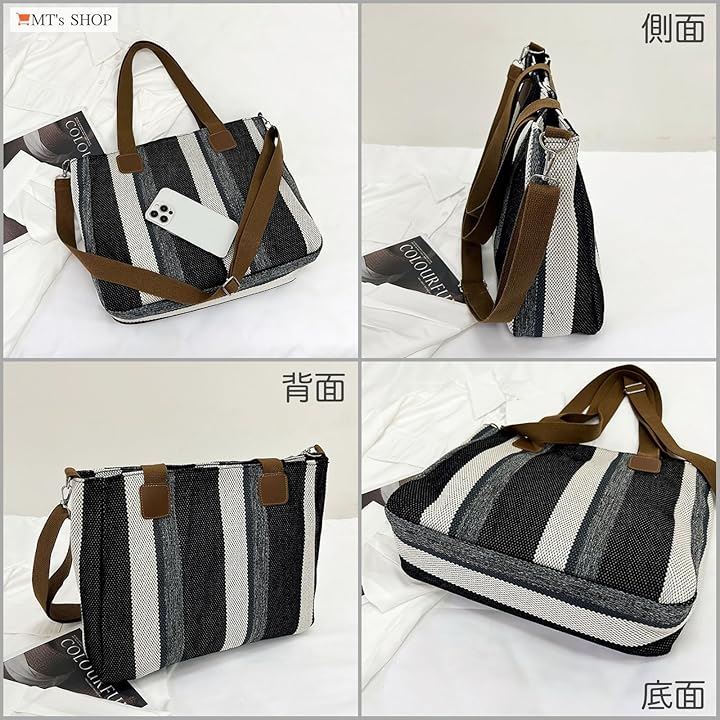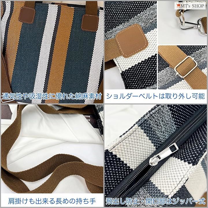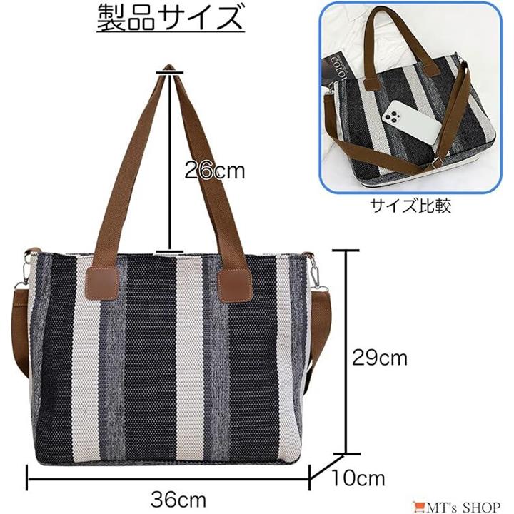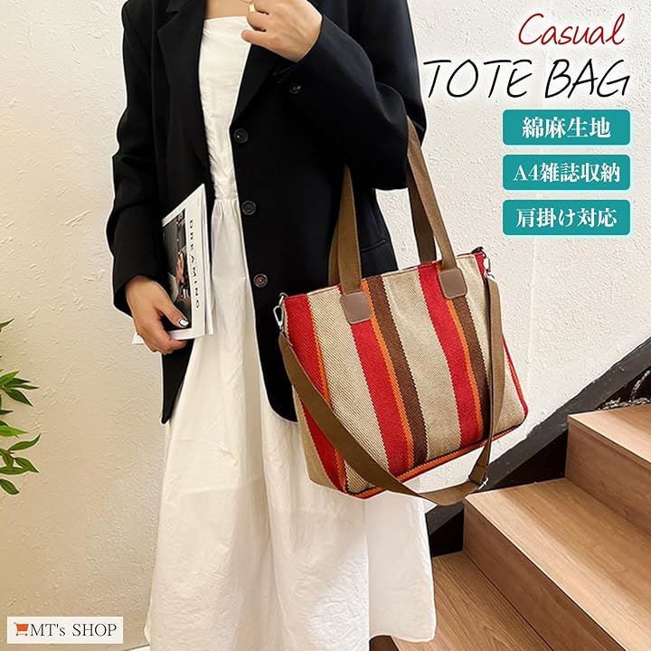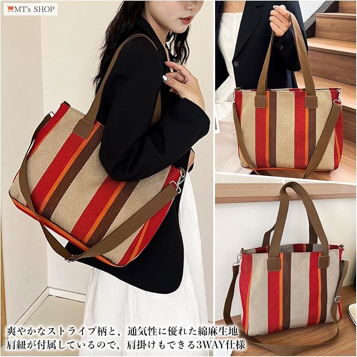 トートバッグ ショルダー レディース ストライプ柄 A4収納 コットンリネン 綿麻 カジュアル 斜めがけ 手提げ 通勤 SH415