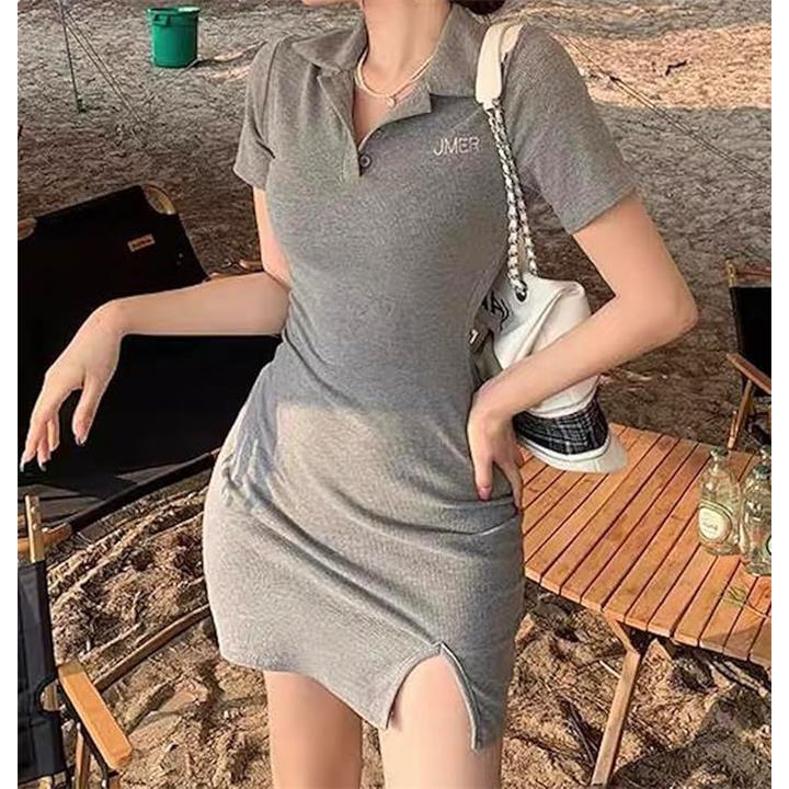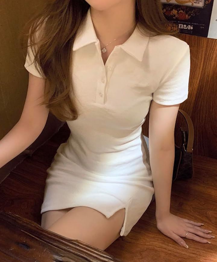 リブ フィット ポロ ミニ ワンピース 半袖 クラシカル ポロ襟 レディース 無地 シンプル セクシー プレゼント 贈り物 誕生日 おでかけ 軽い お祝い しんぷる トレンド 流行 流行り はやり 女性 えり 洋服 韓 ぶらうす 麻 薄 厚 手