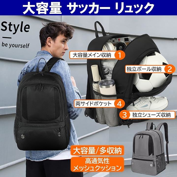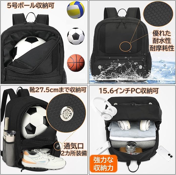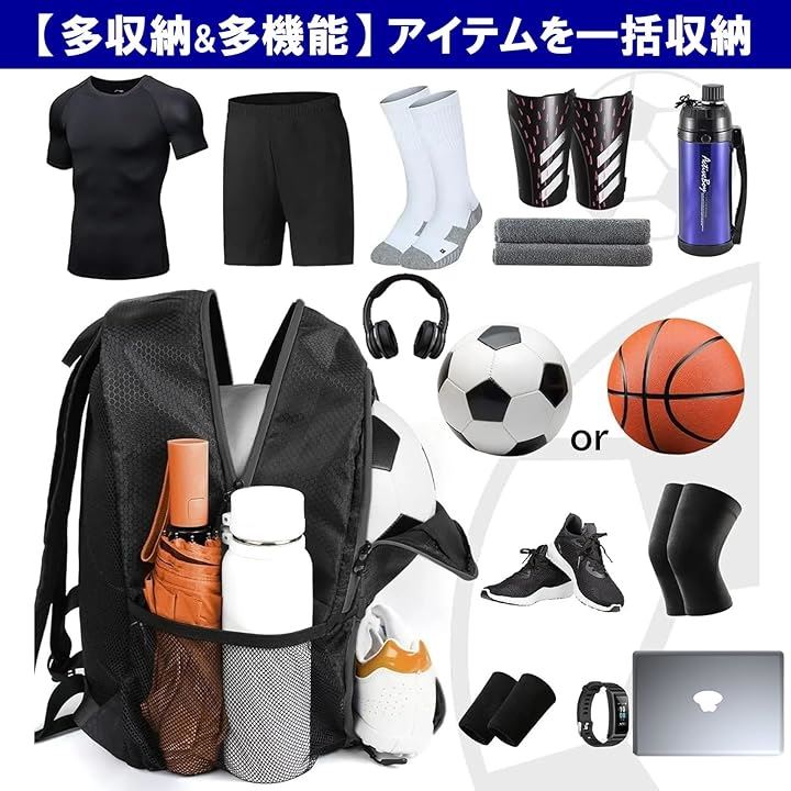 サッカー リュック 大容量 多機能 軽量 ボール シューズ スパイク 収納 バスケ ボールケース 部活 通学