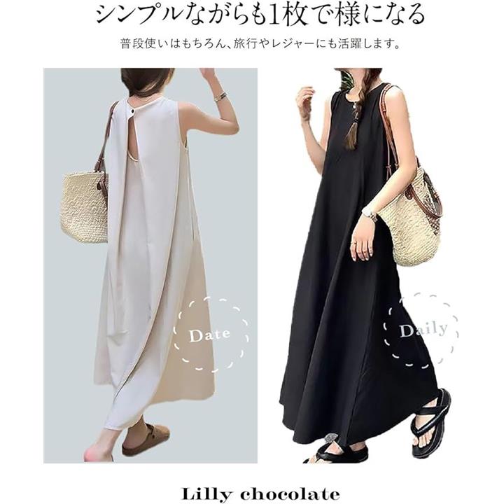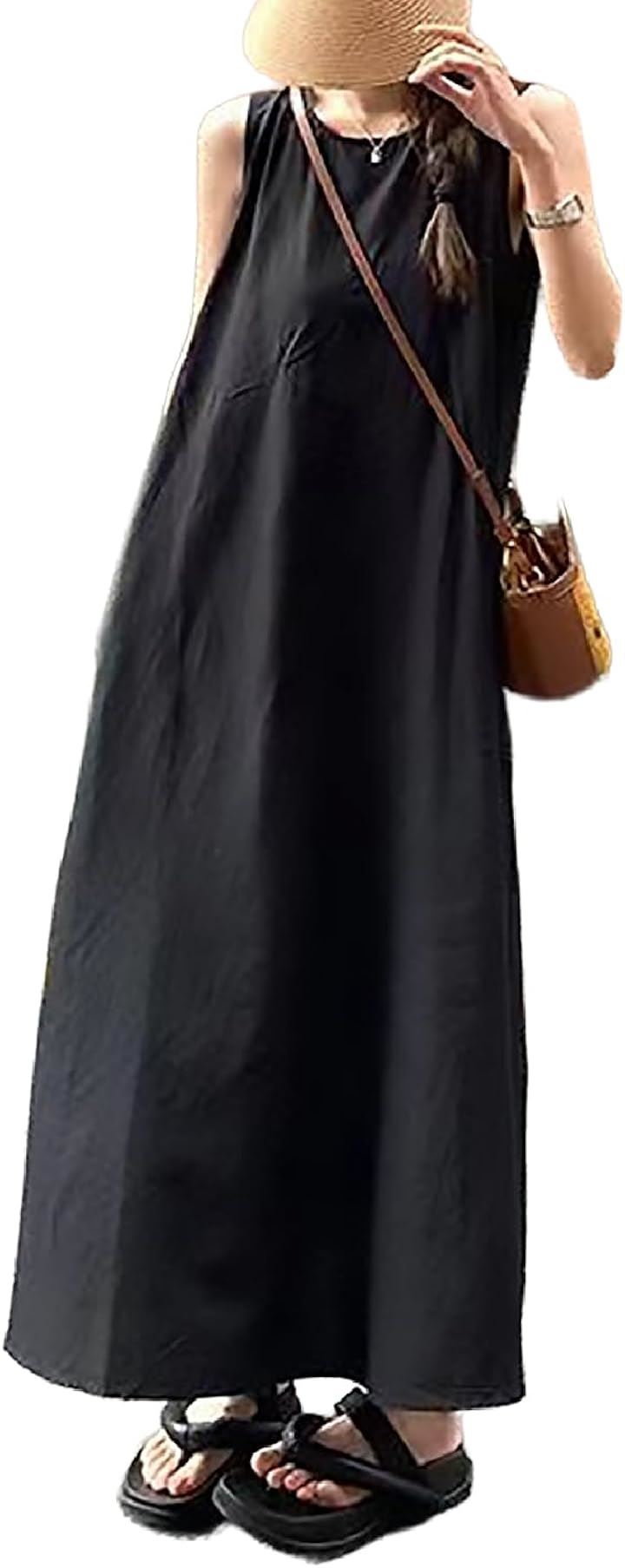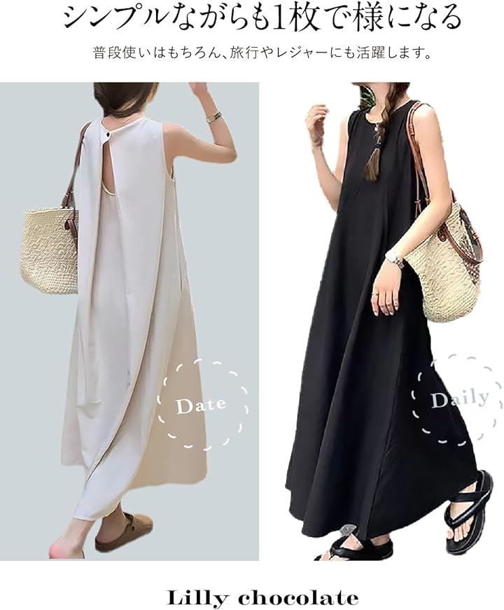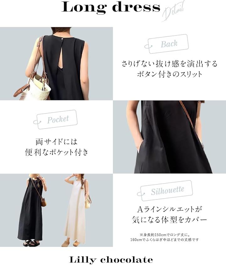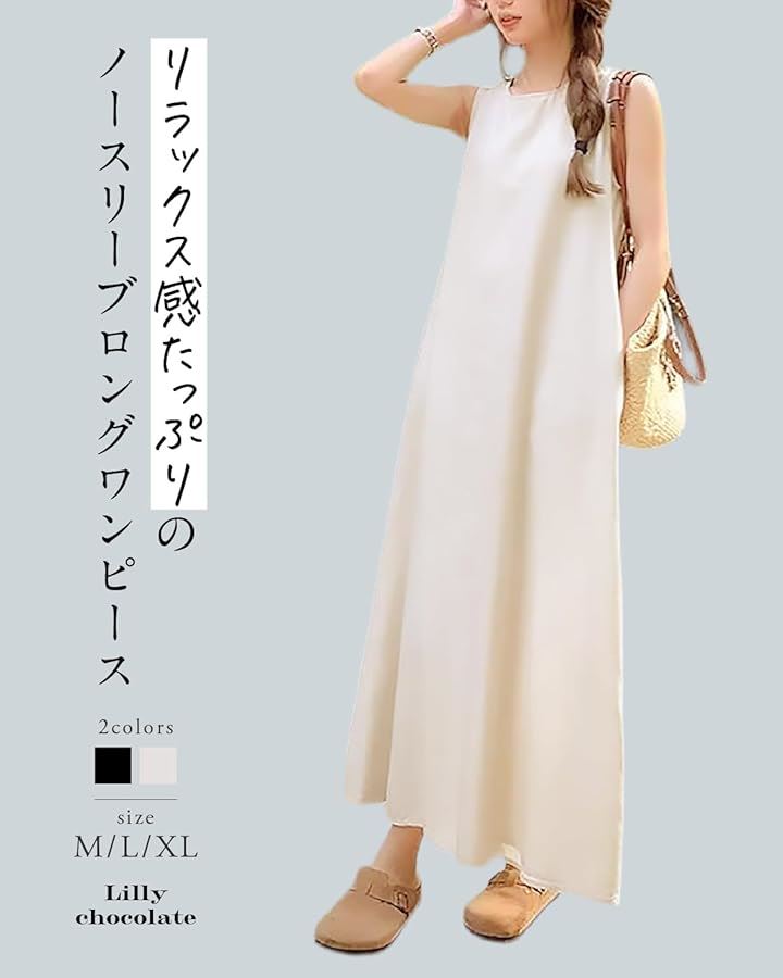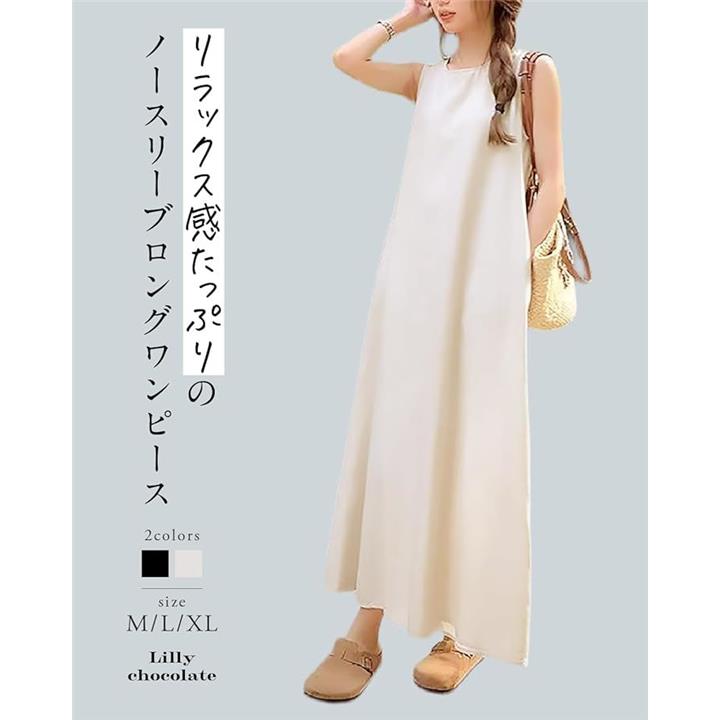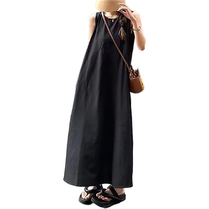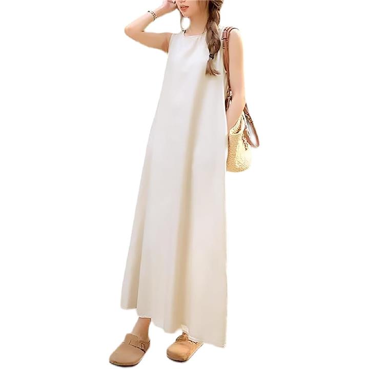 ロングワンピース レディース 夏 薄手 ノースリーブ ゆったり Aライン ポケット付き マキシ丈 体型カバー リゾート 海 プール 旅行 水着の上に 羽織れる カジュアル 無地