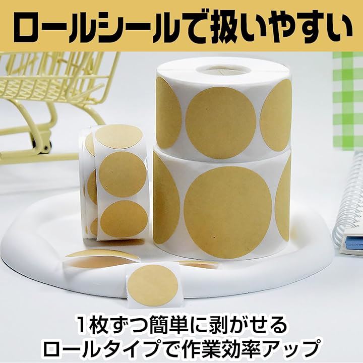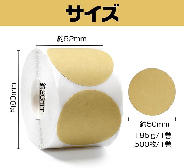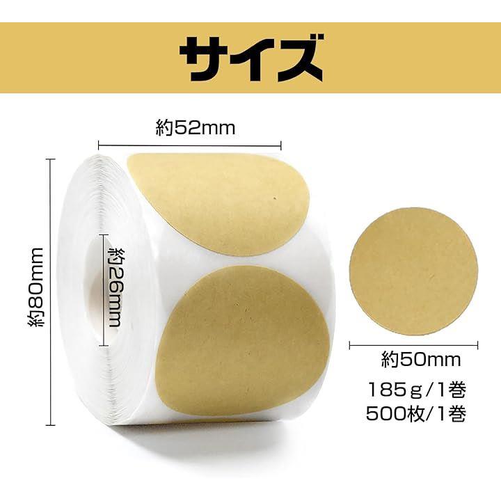 丸シール クラフト紙 ロールシール 50mm 500枚 丸型ラベル印刷 円形ステッカー 文字が書ける