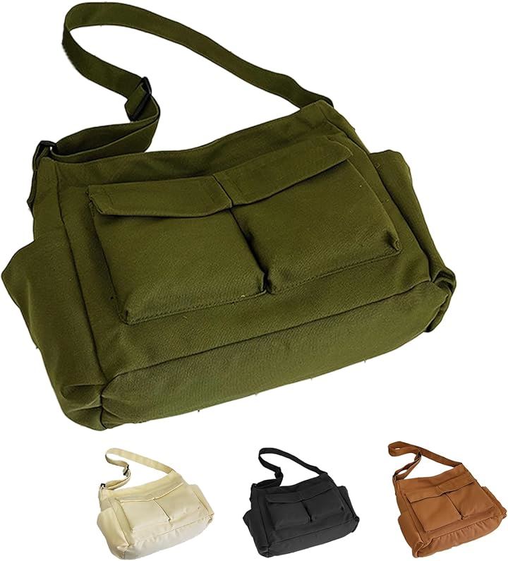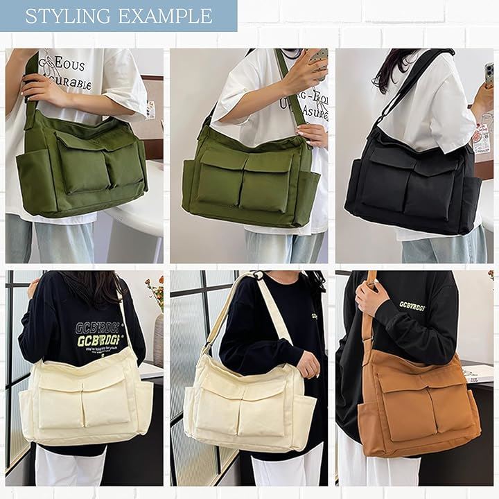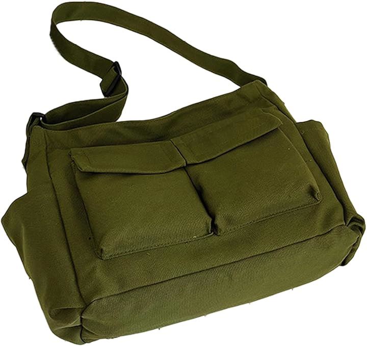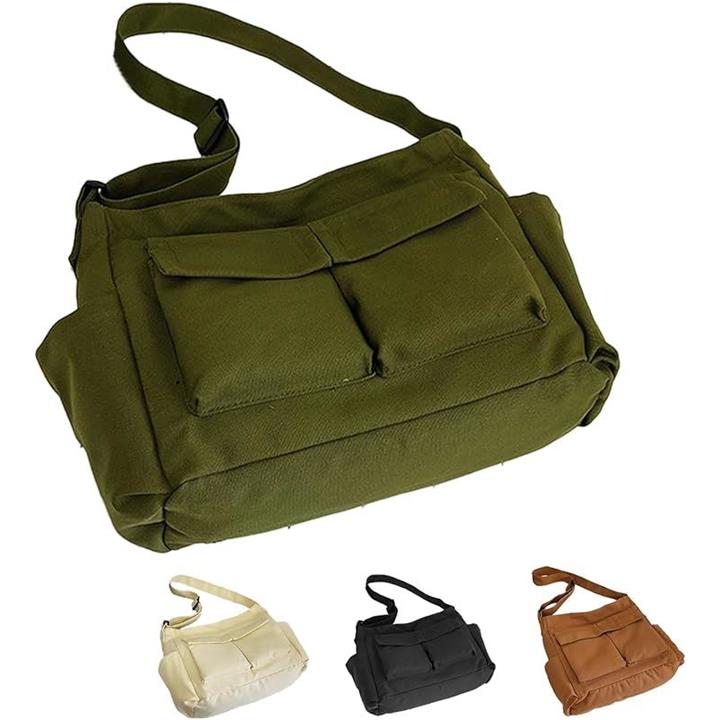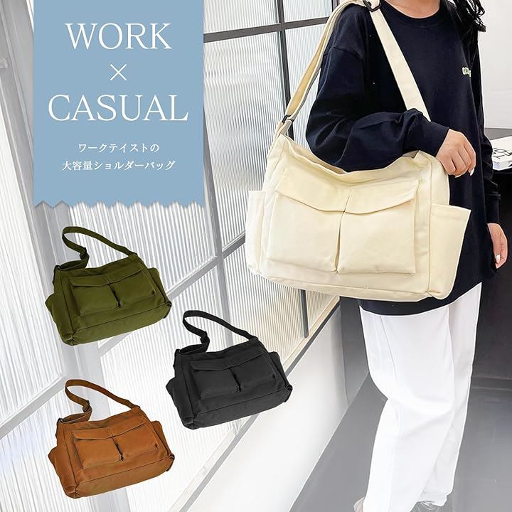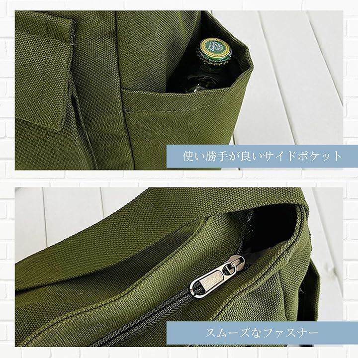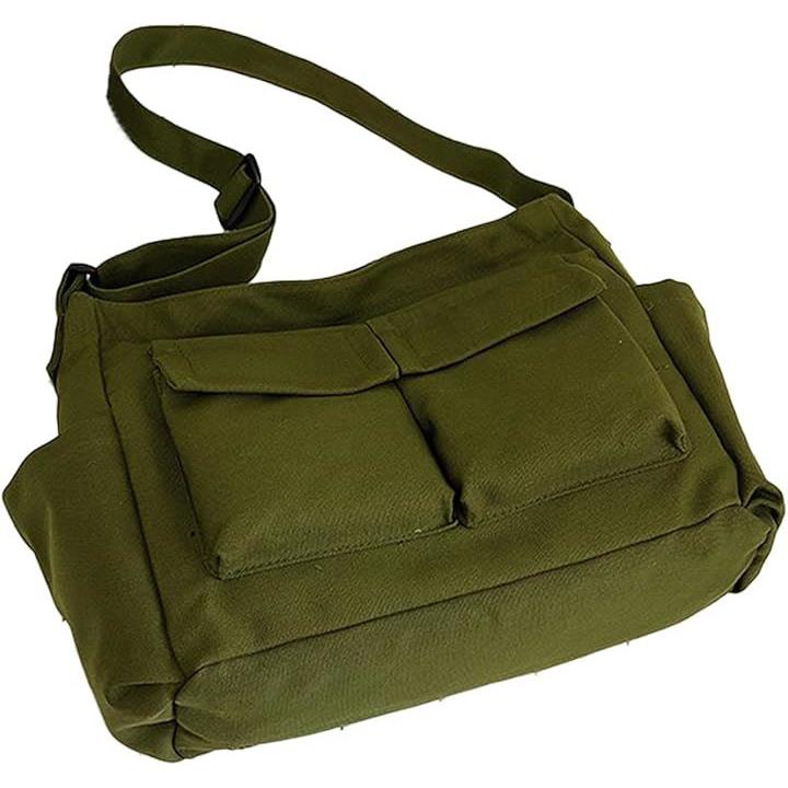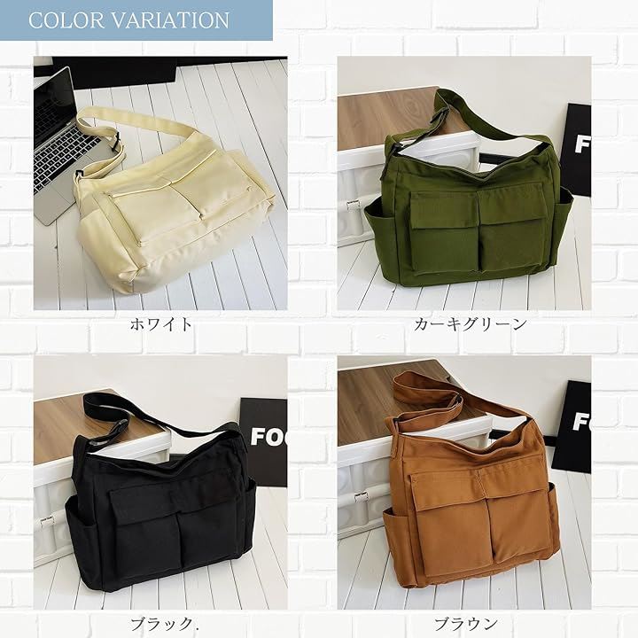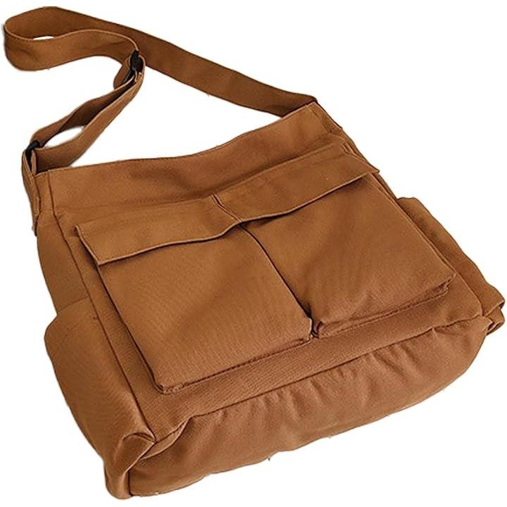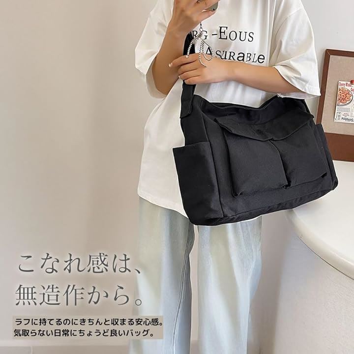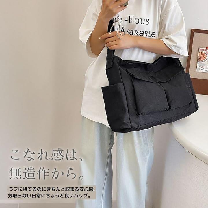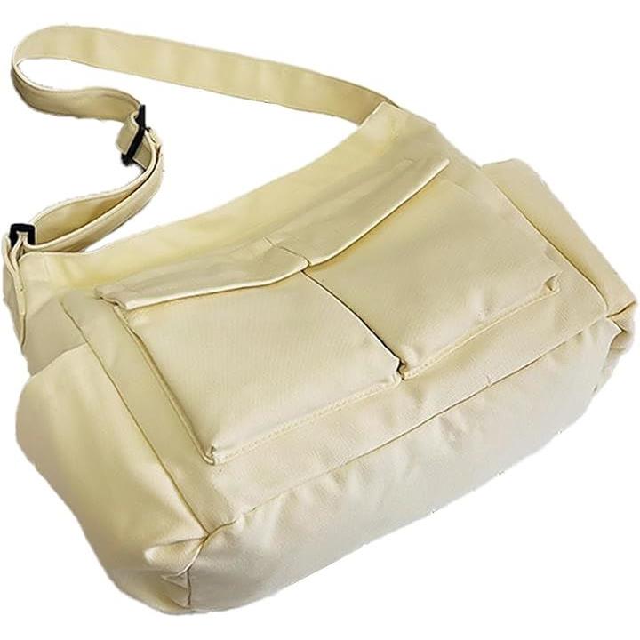 多目的 ショルダー バッグ 大容量 無地 キャンバス生地 通学 旅行 カジュアル 肩掛け 斜めがけ ポケット 大学生