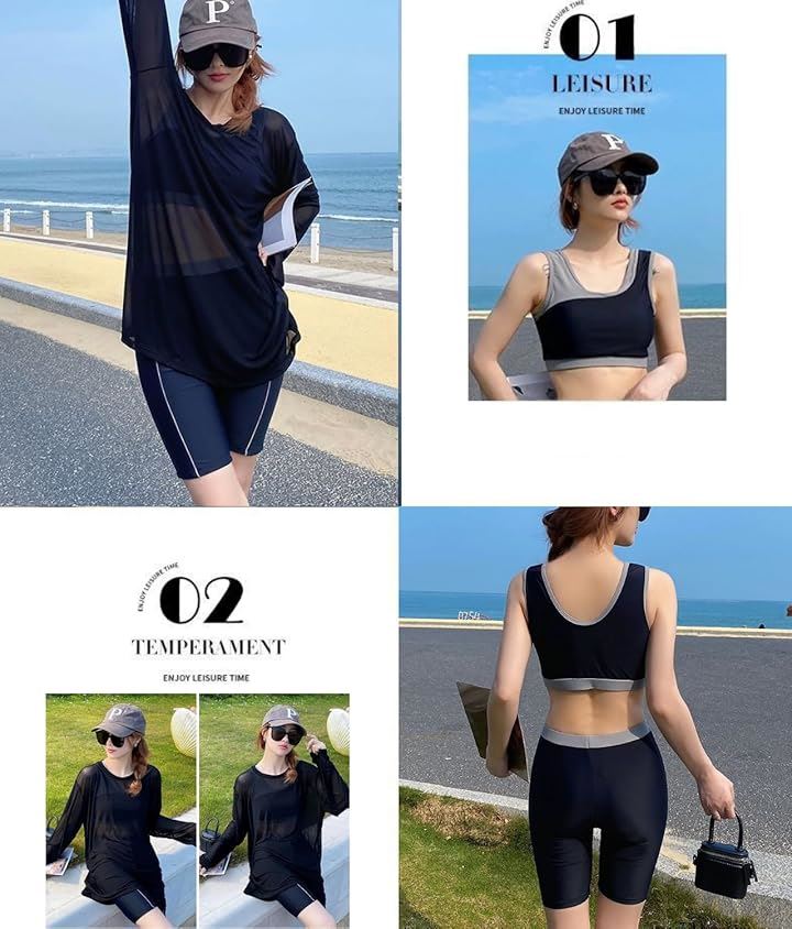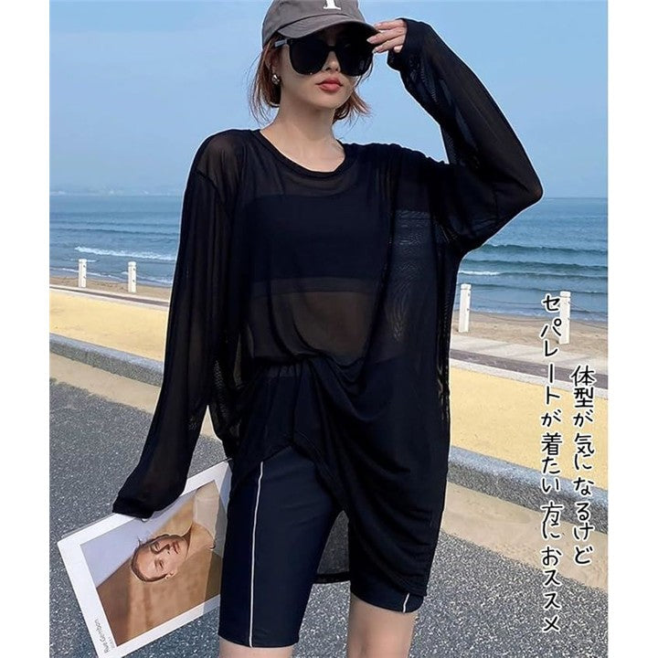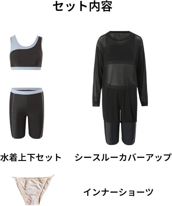 3点セット 水着 レディース スポーツブラ+ショートパンツ+カバーアップ ラッシュガード 体型カバー UV対策 トレーニングウェア ヨガ ピラティス
