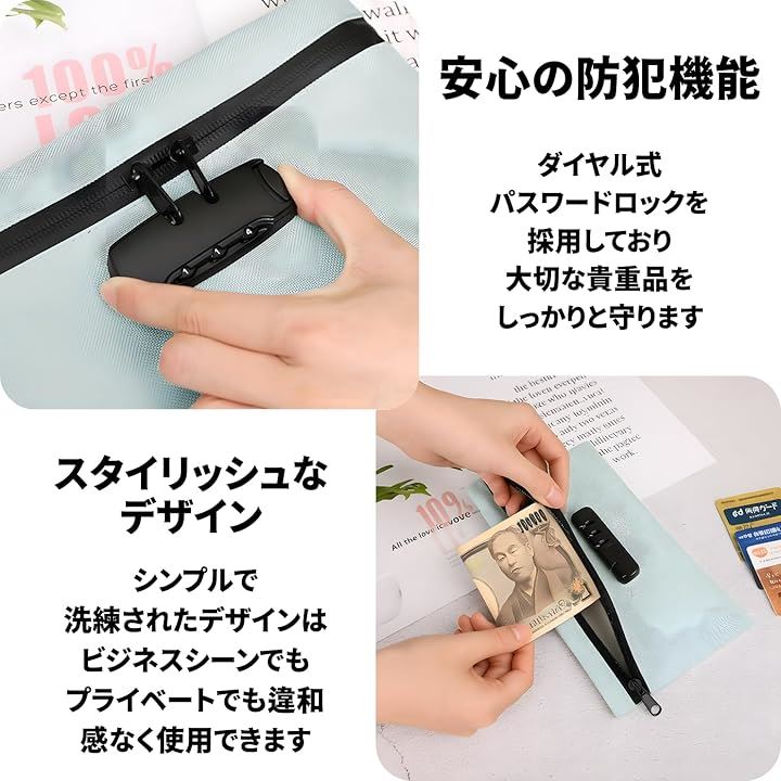 防犯バッグ 鍵付きポーチ 防水 ダイヤル式 収納ボックス