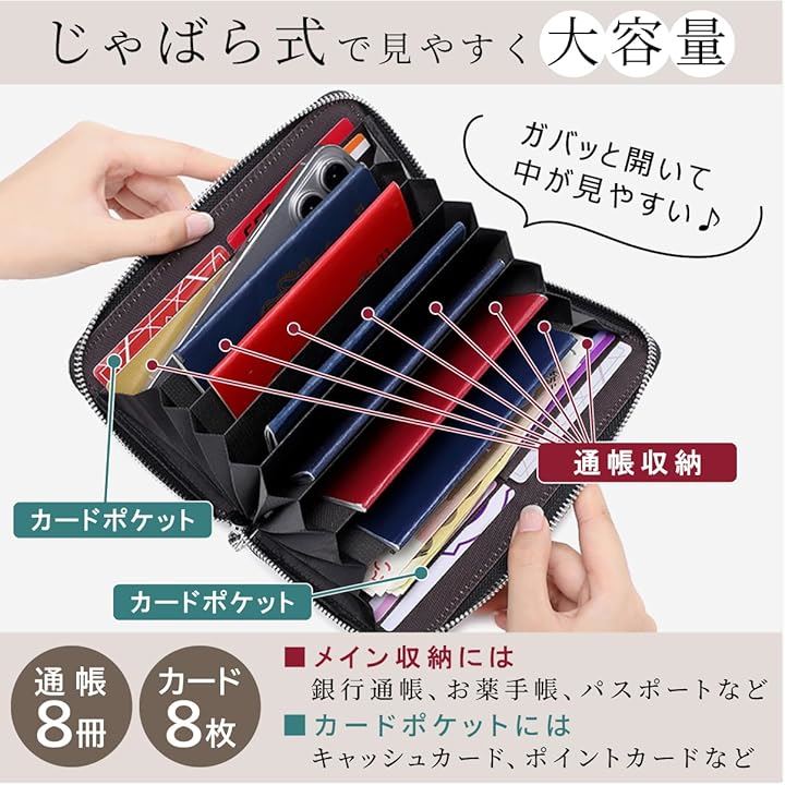 牛革 通帳ケース じゃばら式大容量 RFID スキミング防止 パスポート カードケース