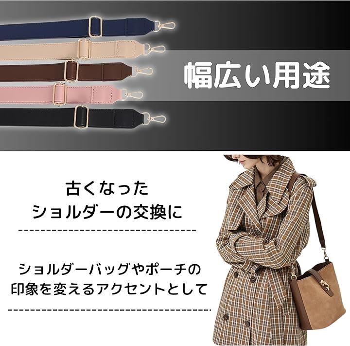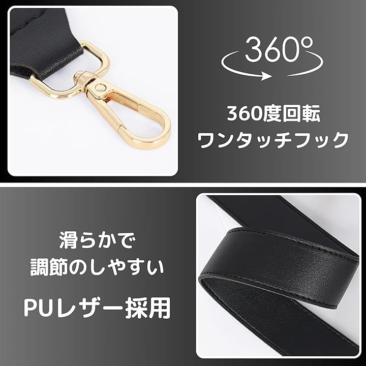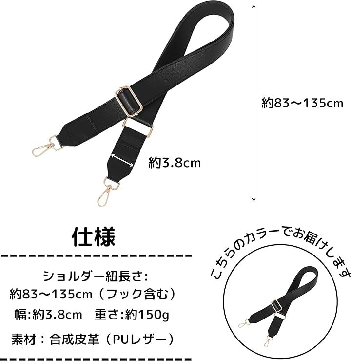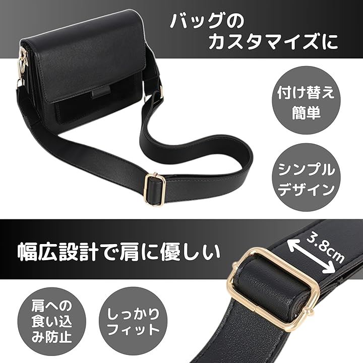 ショルダーストラップ 太め PUレザー バッグ用 交換ベルト 調節可能 単品 金具付き 肩掛け 幅広タイプ 黒