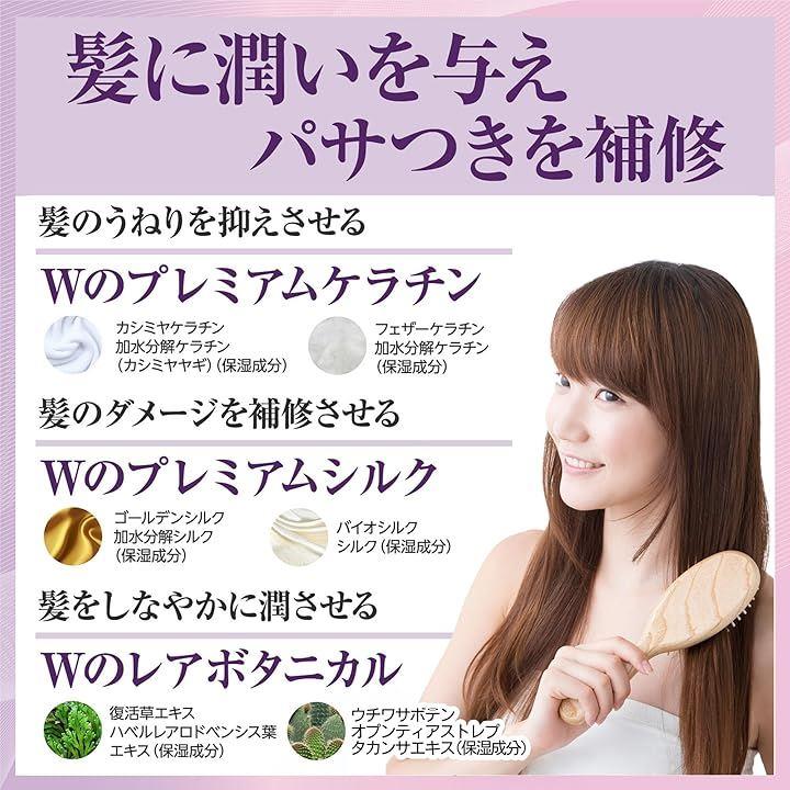 Wのプレミアムケラチン「うねり補修成分」 「カシミアケラチン」加水分解ケラチン(カシミヤヤギ)(保湿成分)と「フェザーケラチン」加水分解ケラチン(保湿成分)を配合