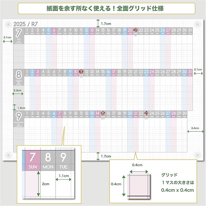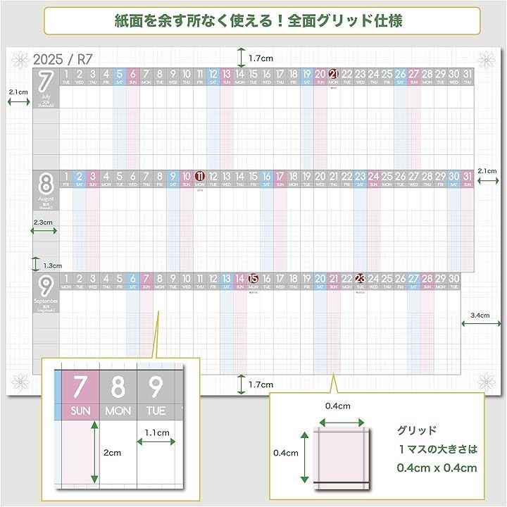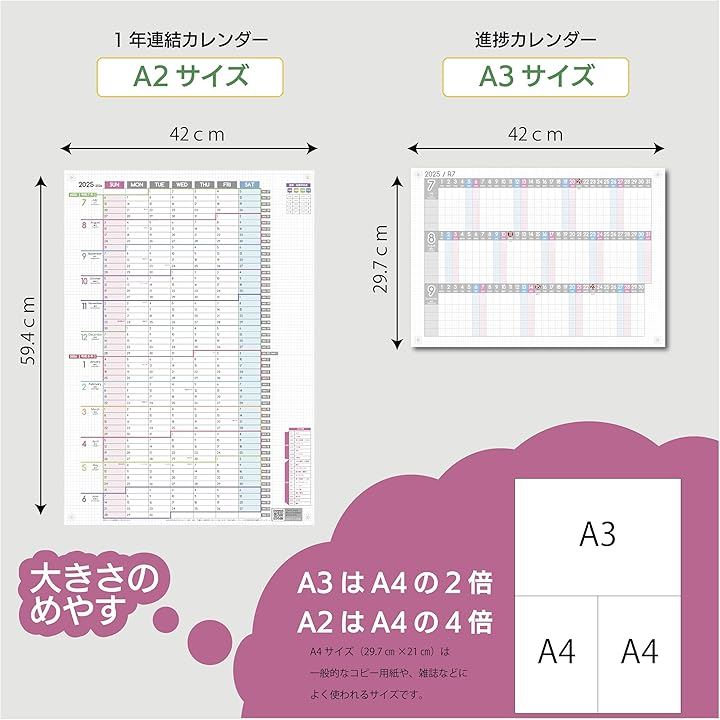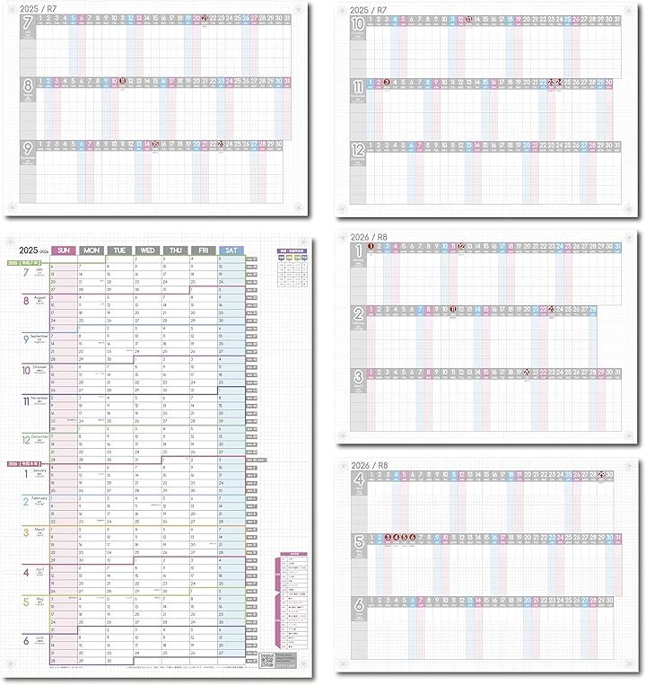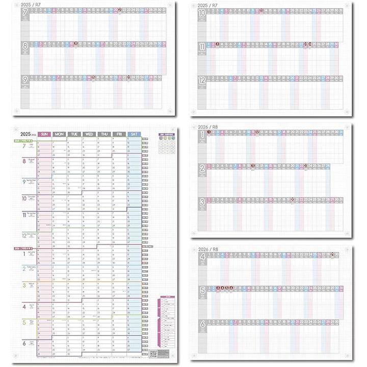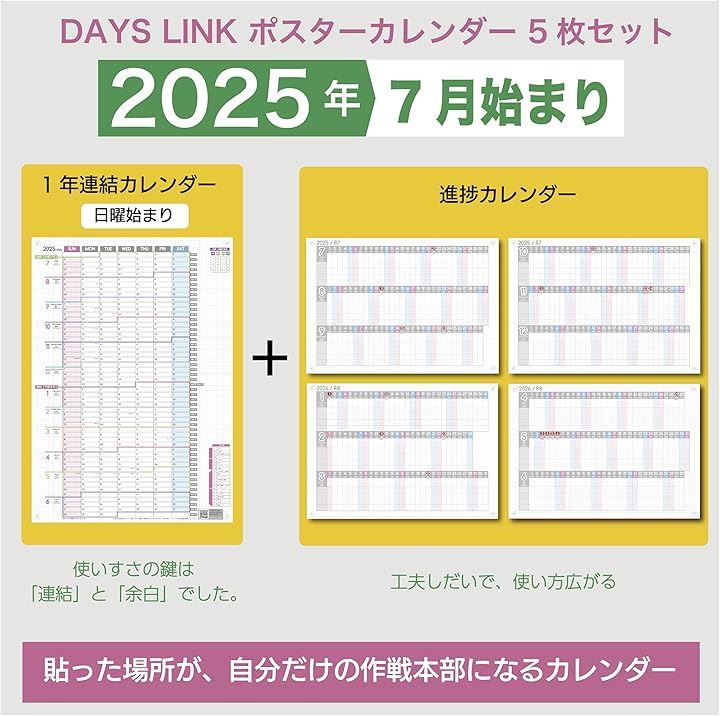 1年連結カレンダー & 進捗カレンダー ガンチャート 家族カレンダー 2025年 7月始まり日曜始まり 大きい 壁掛け