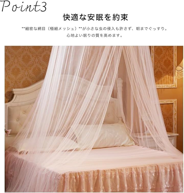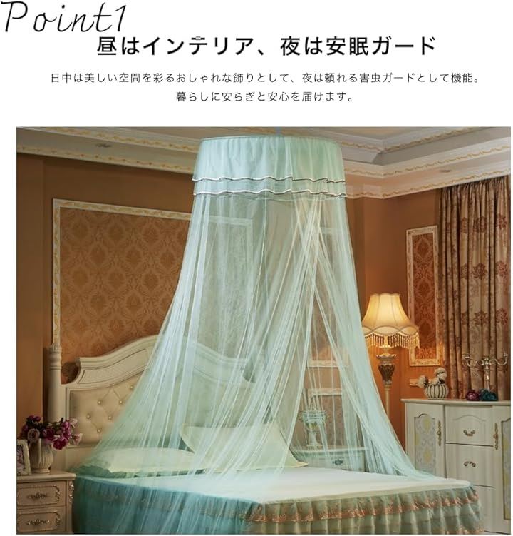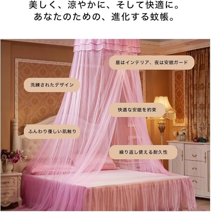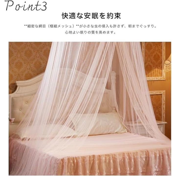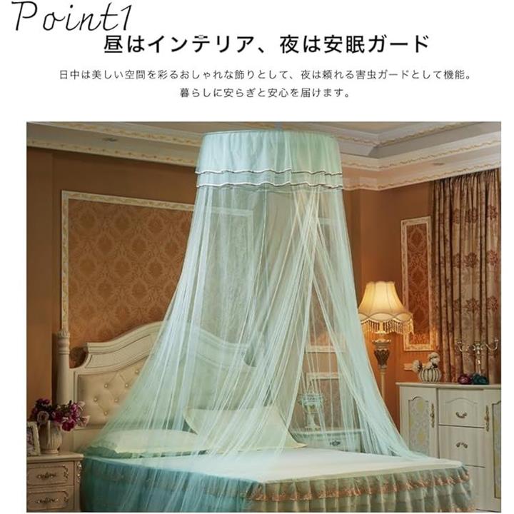 天蓋 カーテン モスキート ネット 蚊帳 快適安眠 虫除け 円柱形 吊り下げ ベッド 防虫 防蚊