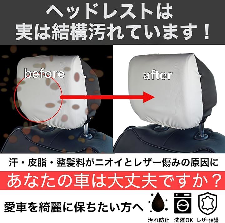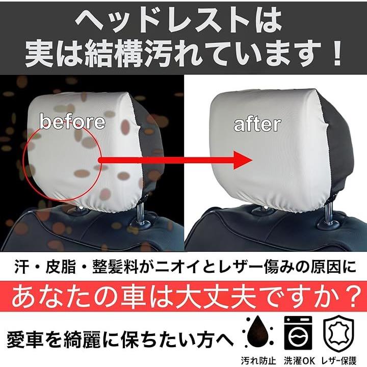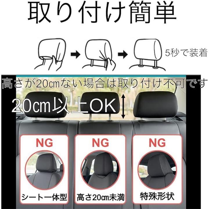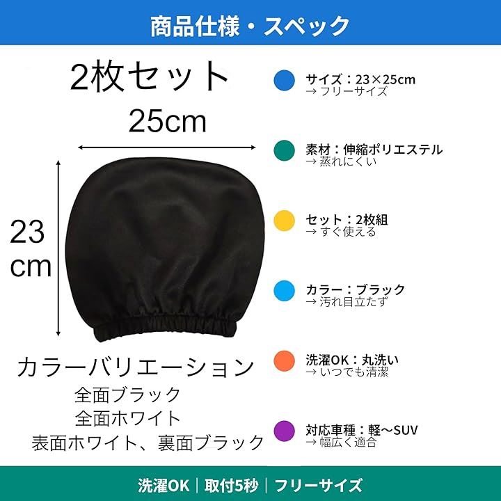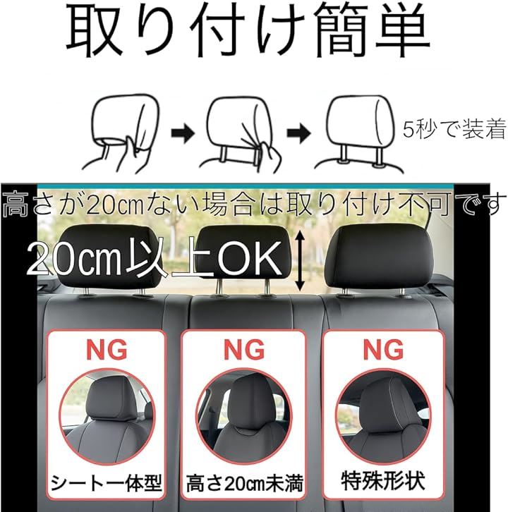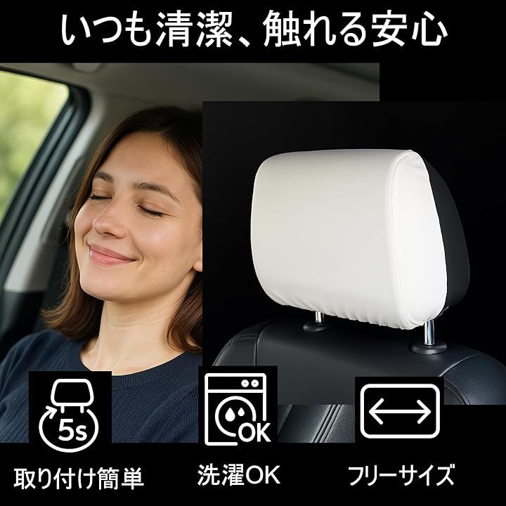 車用ヘッドレストカバー 洗濯機OK 丸洗い抗菌 ポリエステル 2枚セット フリーサイズ 5秒取付