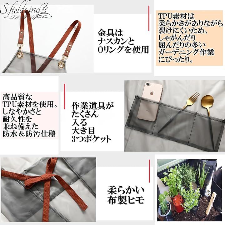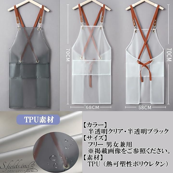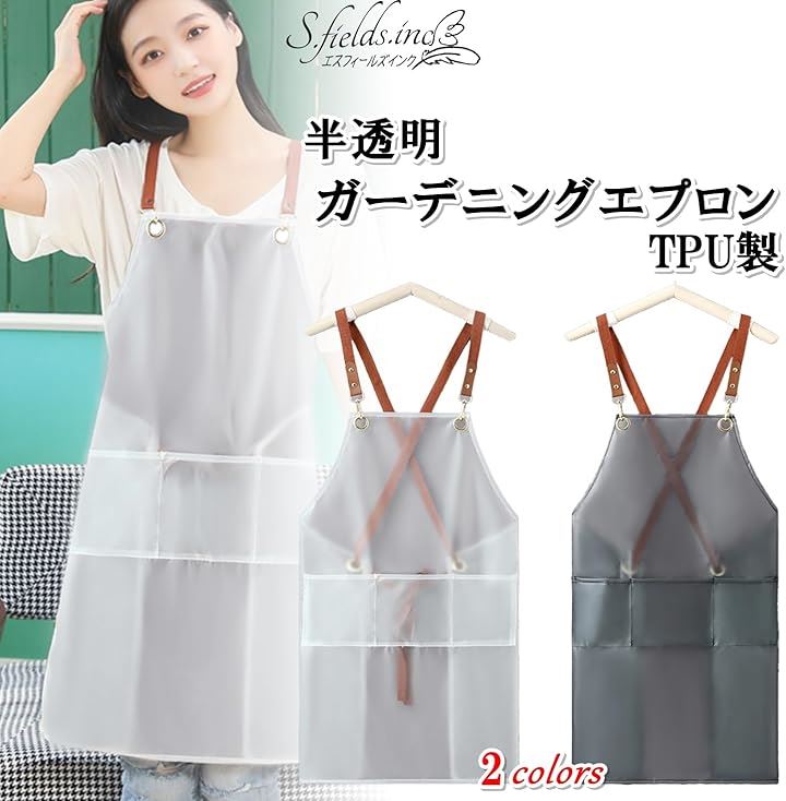 ガーデニングエプロン 半透明 園芸 農作業 防水 TPU 男女兼用 カフェエプロン 飲食店