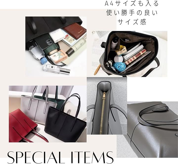 互換品 トートバッグ PUレザー A4対応 ビジネス カジュアル レッスン マザーズバッグ