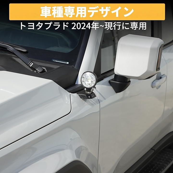 トヨタプラド 2024年~現行に専用 車用 照明ブラケット Aピラーサーチライトブラケット 車用ライトアクセサリー フロント両側 外装パーツ 車外 カー用品 車種専用設計 カーボンスチール製 2点セット