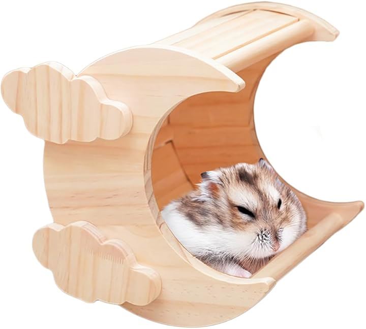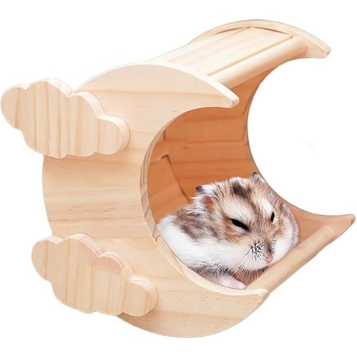 ハムスター 家 シェルター 月雲型木造家 木製格子ケージ 固定睡眠木製巣 小型ペット造園用品 隠し家