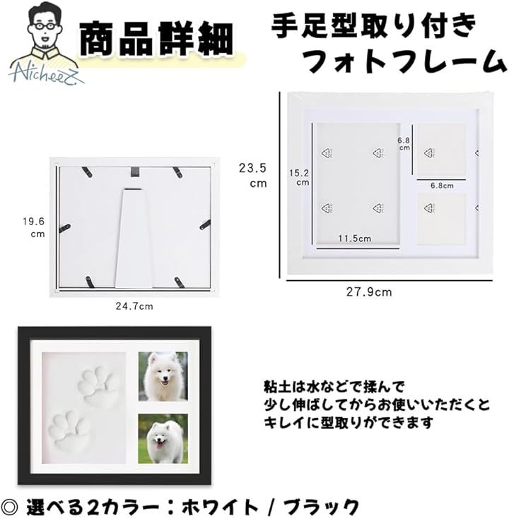 メモリアル 犬 猫 足あと スタンプ フォトフレーム 手形 足形 肉球 キット