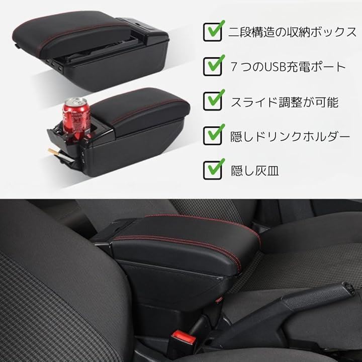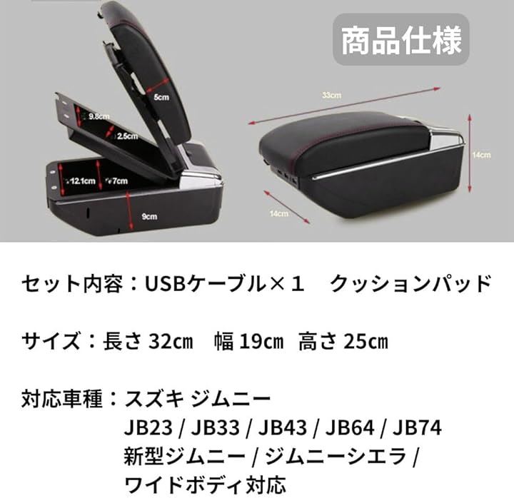 ジムニー アームレスト コンソールボックス JB23 JB33 JB43 JB64 JB74対応 USB付 ドリンクホルダー 肘掛け 小物収納