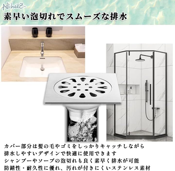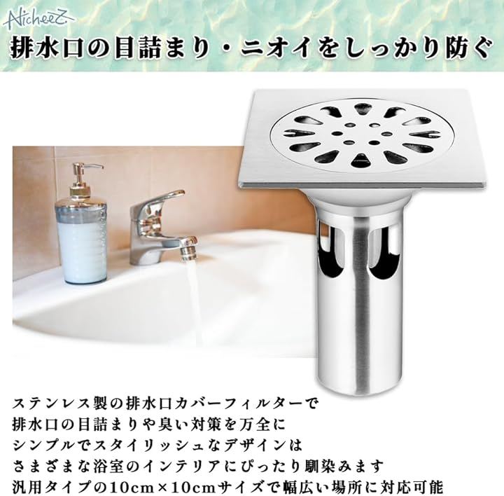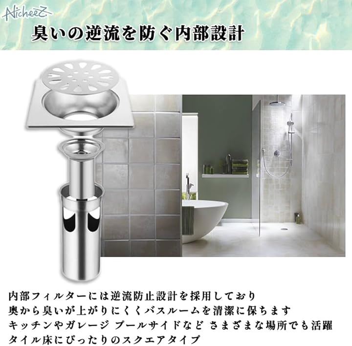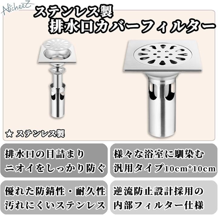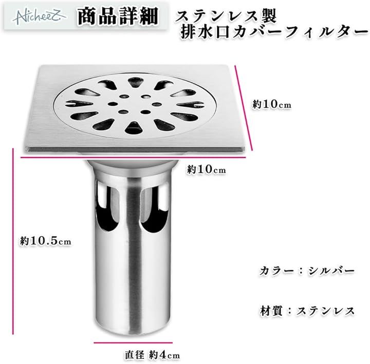 床ドレン 排水フィルター ステンレス製 正方形 排水口カバー シャワー 廃棄物フィルター 304ステンレス ゴミ受け 排水トラップ 浴室 キッチン 洗面所 トイレ 用 排水溝 蓋