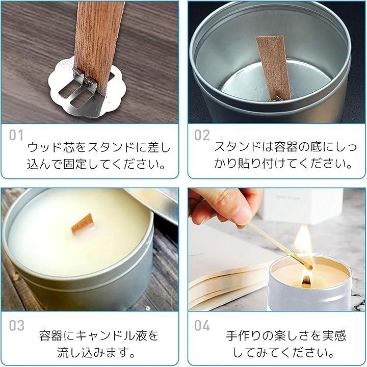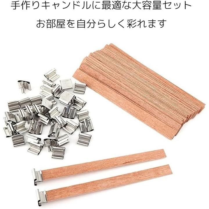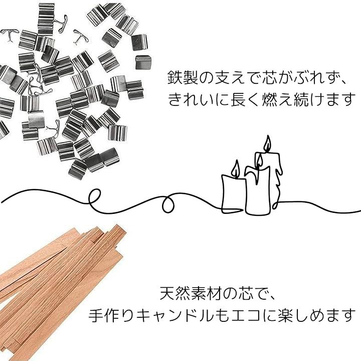60本セット キャンドルウィック 木製芯 鉄製スタンド DIYキャンドル 手作り用