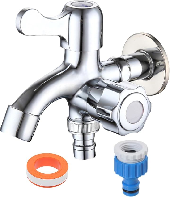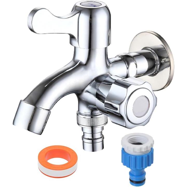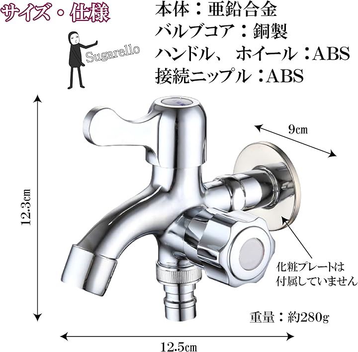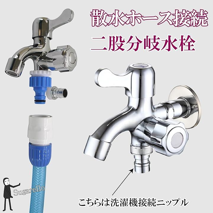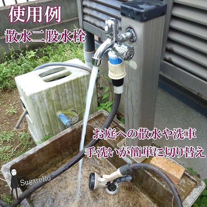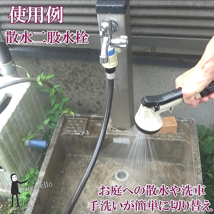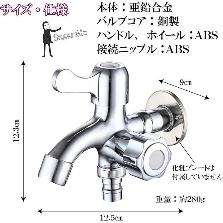 散水用 二口横水栓 呼び13 ワンタッチ接続 ホース 屋外水栓 水道 蛇口 二股 分岐水栓 庭 花壇 亜鉛合金 ABSハンドル 全銅バルブコア