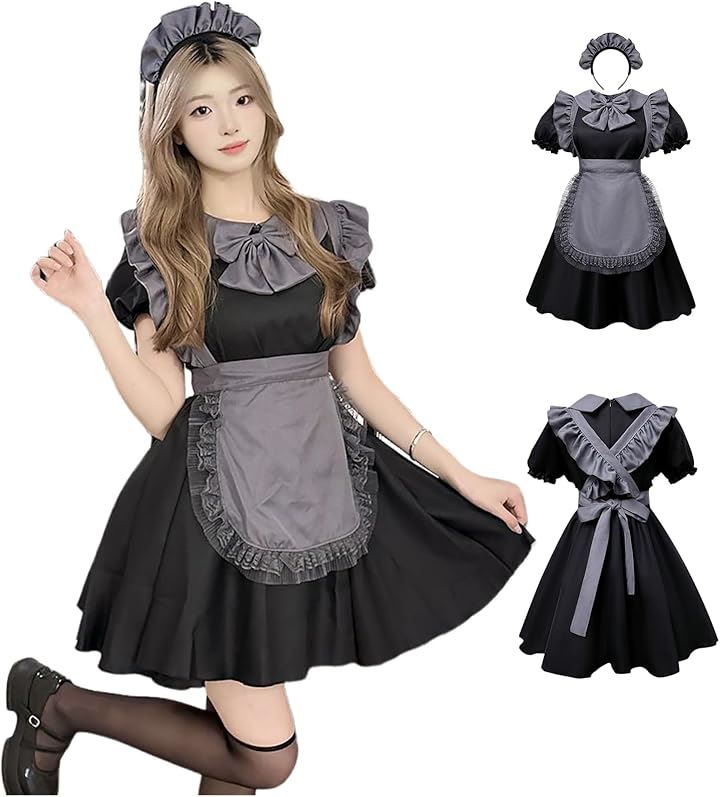 洋館 メイド コスプレ ゴースト ゾンビ コスチューム 衣装 グレー ハロウィン 仮装 大人 レディース 可愛い ゴシック ホラー お化け キョンシー ドレス ゴスロリ