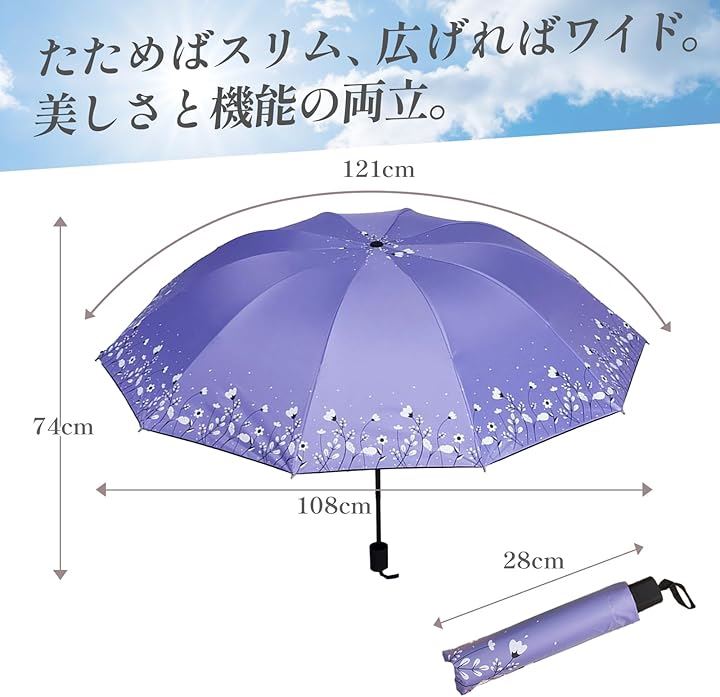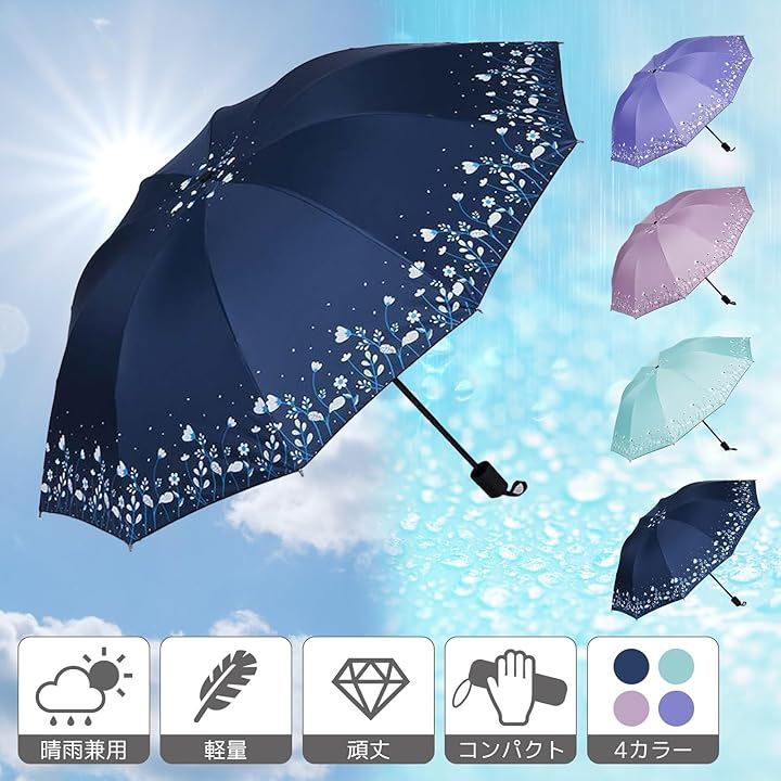 折りたたみ傘 晴雨兼用 UVカット 花柄 小型 クール 折り畳み 厚手 遮光 折りたたみ日傘
