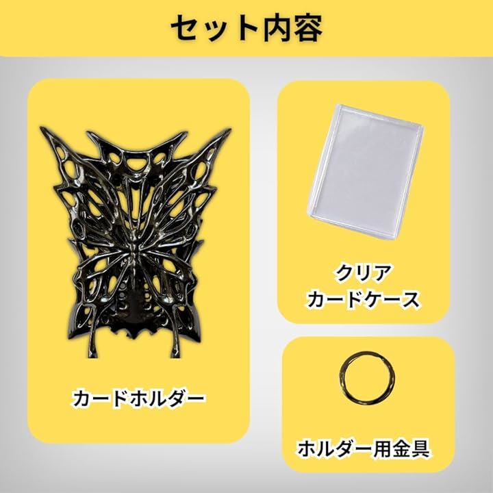 推し活グッズ蝶モチーフ トレカケース カードホルダー|マグネット着脱 ブラック メタリック カードケース トレカホルダー バタフライ