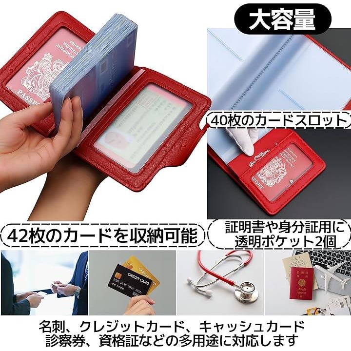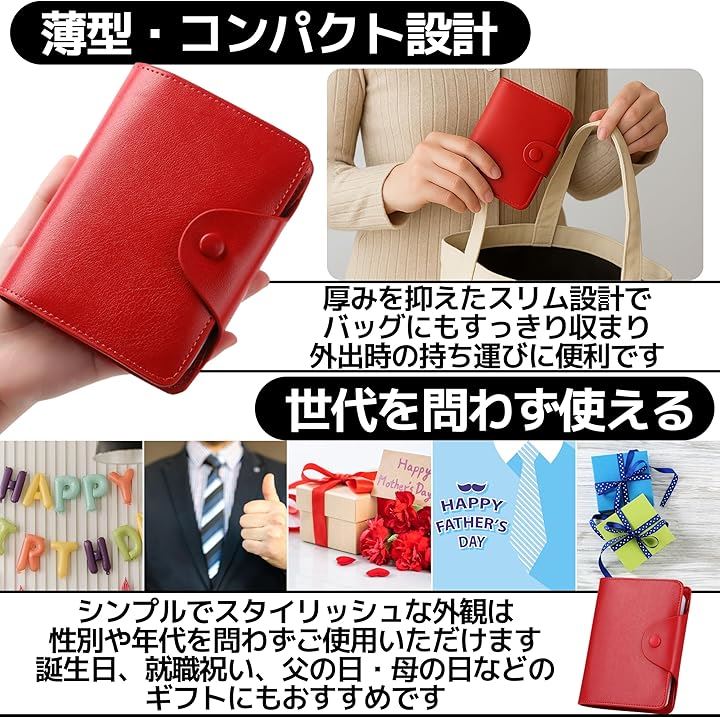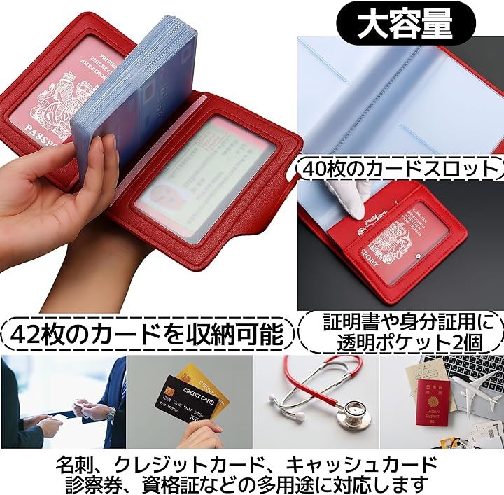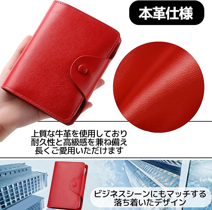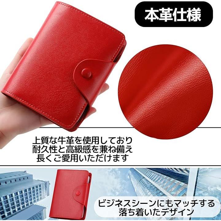 カード入れ 本革 大容量 二つ折り クレカケース 名刺 資格証対応 薄型デザイン メンズ レディース用 赤